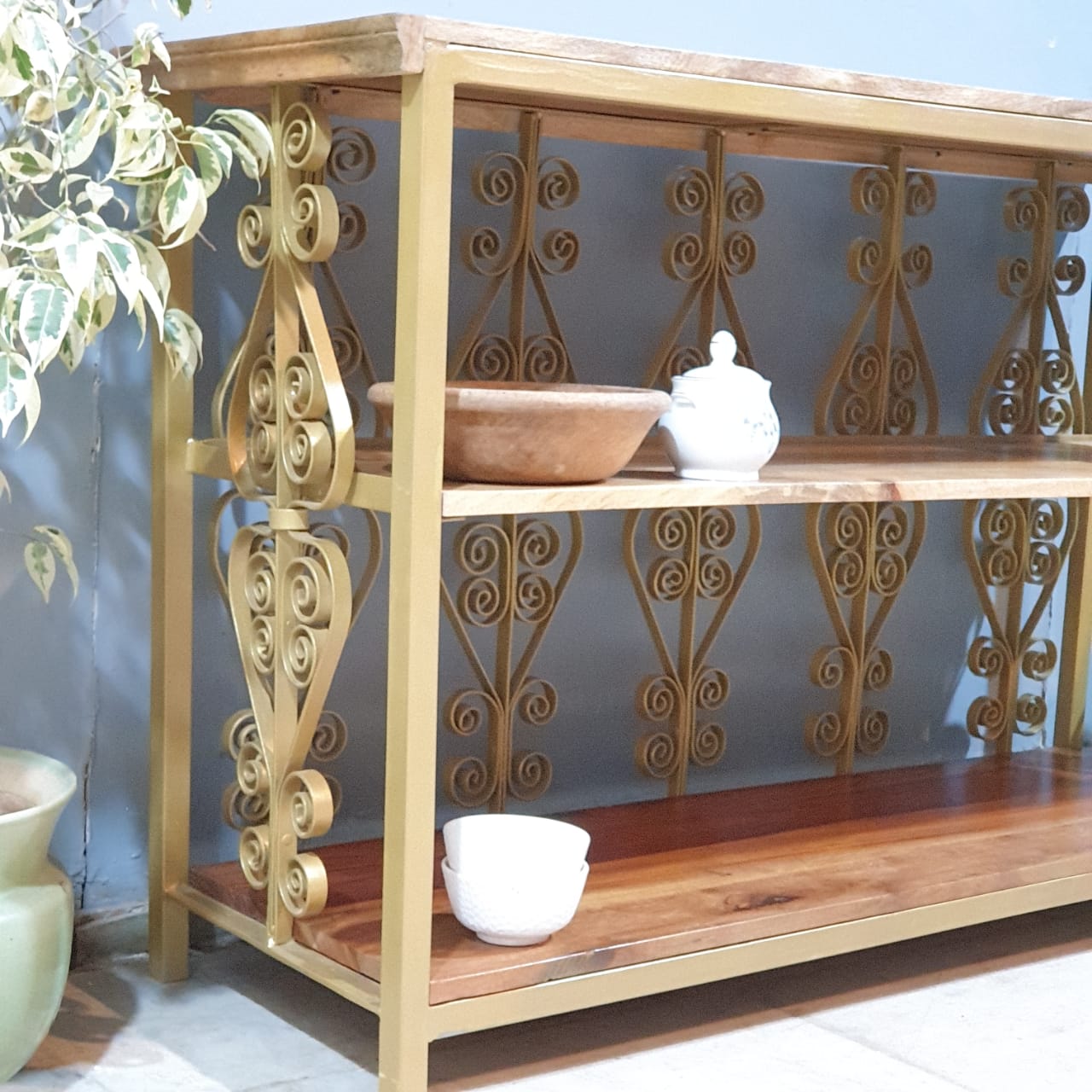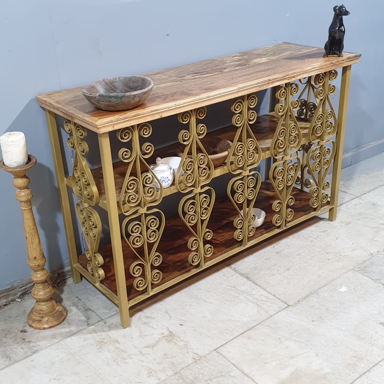Angle Industrial Iron and Mango Wood Hall Console Table 125x42x75 cm