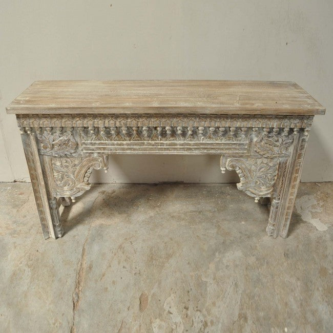 1 x Antique Carved Console Table Whitewash