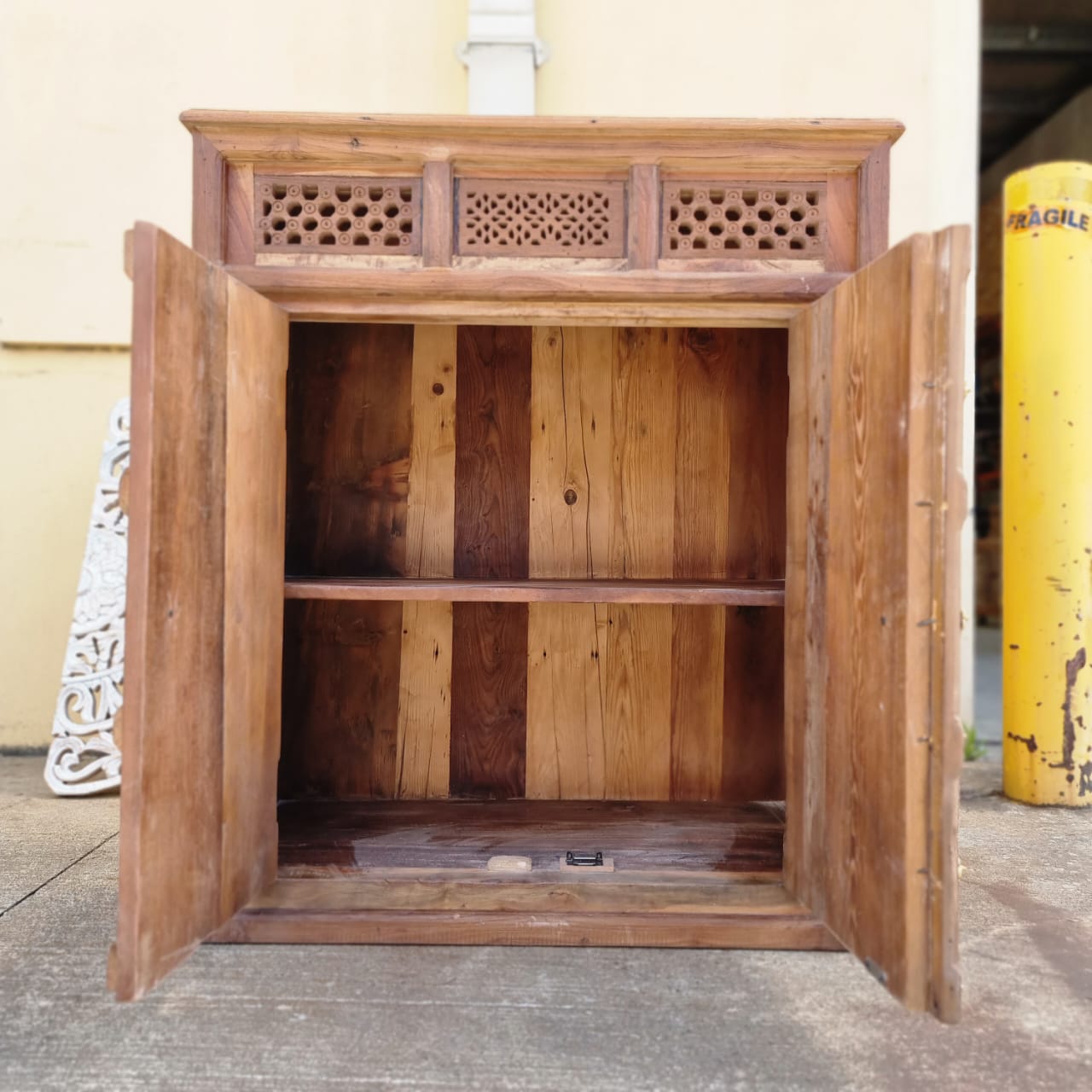Antique Indian Hand Carved Solid Wooden Old Door Buffet Brass Fitting Cabinet Sideboard 105x47x107.5Cm