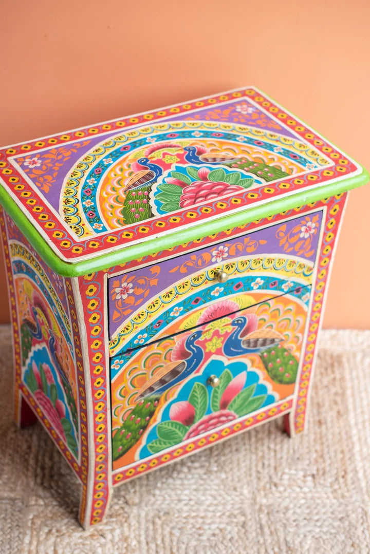 Avani Hand Painted Peacock Solid Wood Side Table 33