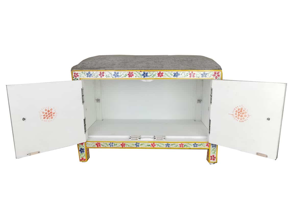 Avani Indian Hand Painted Solid Wood Storage Cabinet Seat With Cushion D72