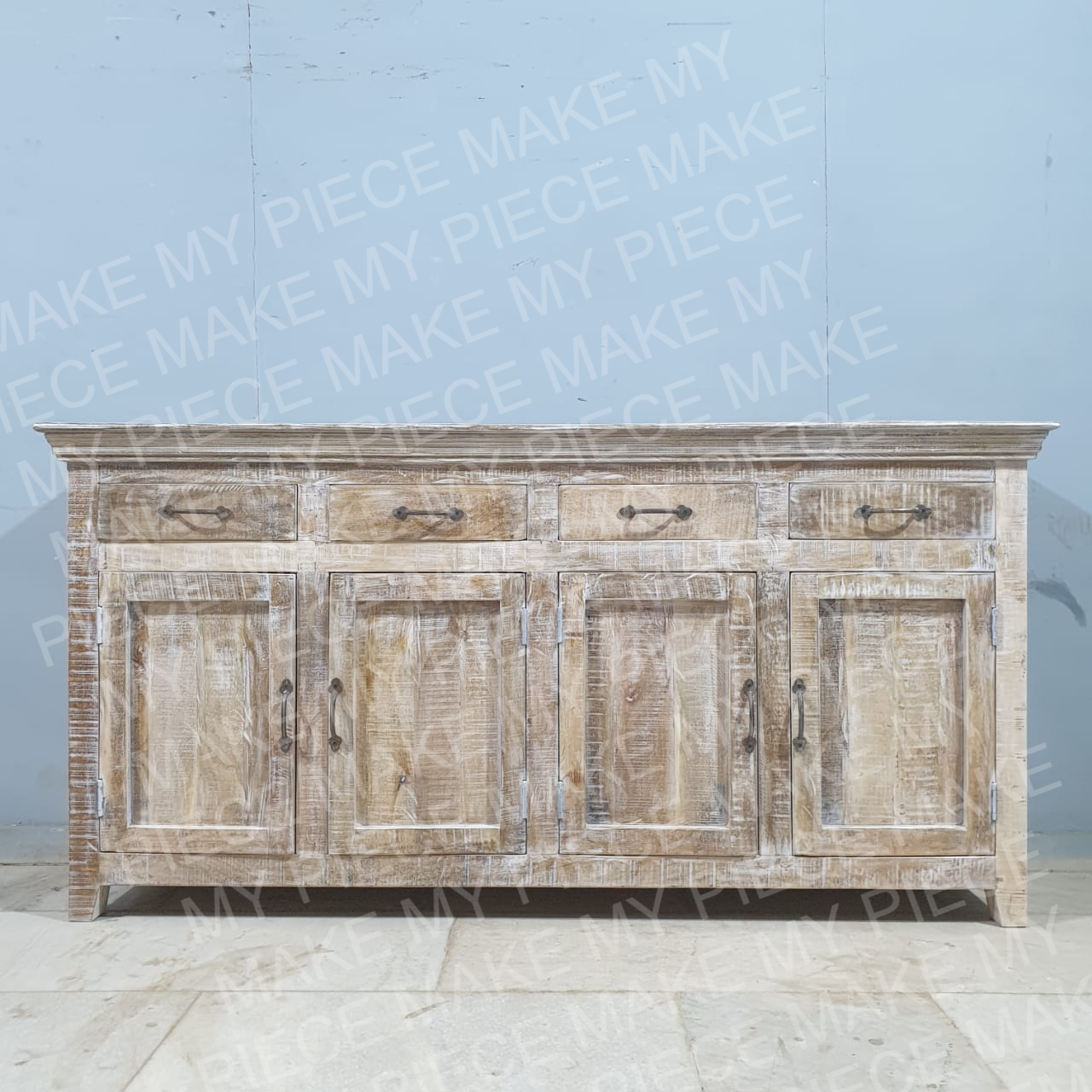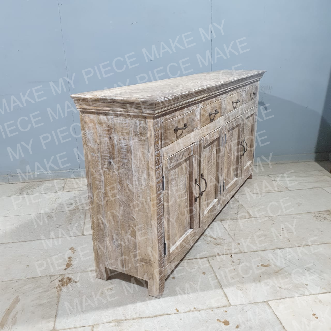 BELINDA Bleached Mango Wood Large Sideboard Shabby Chic French Style Buffet Whitewash