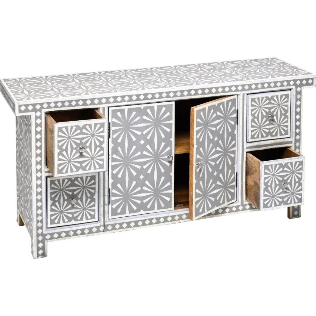 Bone Inlay 4 Drawers And 2 Door Buffet Sideboard Snowflake Grey