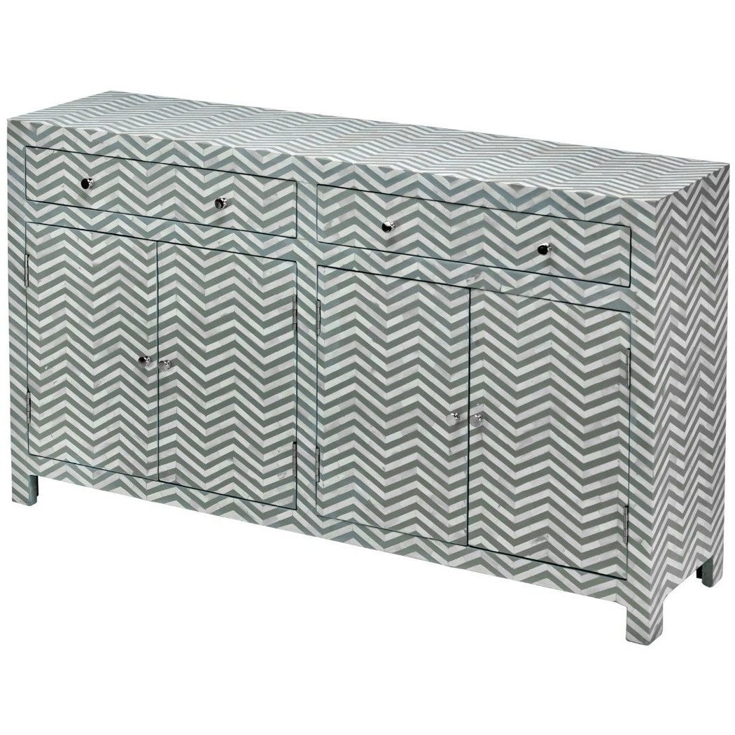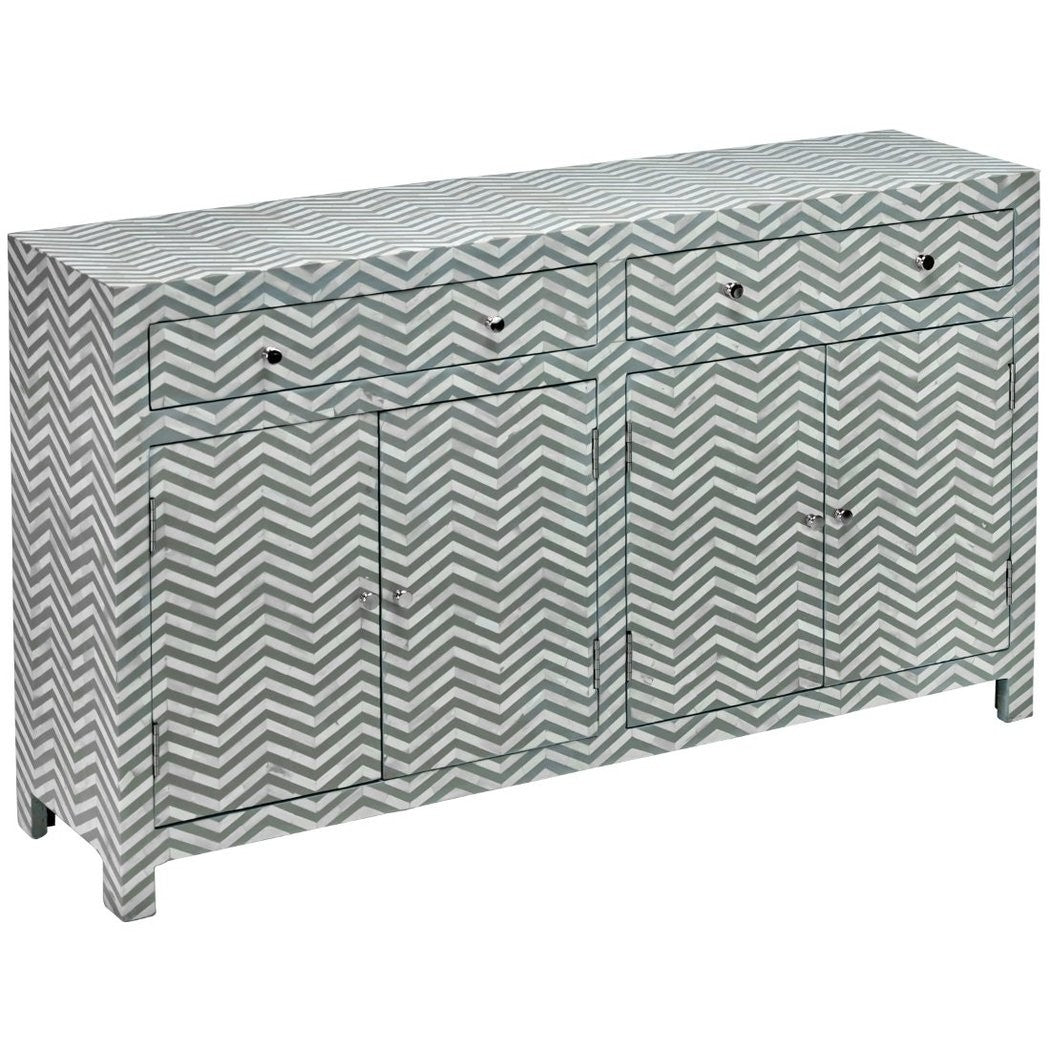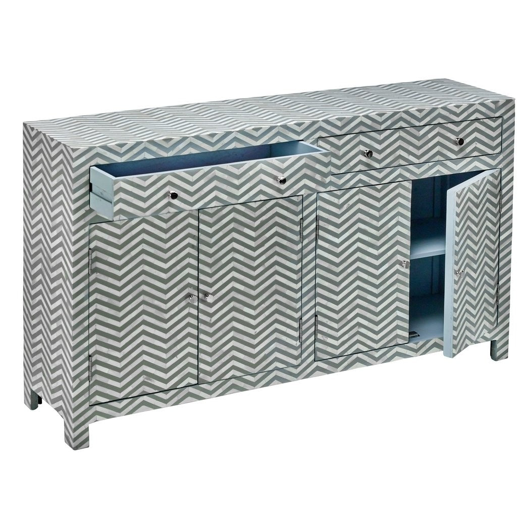 Bone Inlay Chevron Zigzag Buffet Sideboard With 2 Drawers And 4 Door