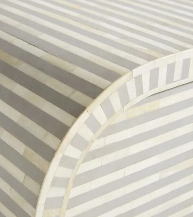 Bone Inlay Handmade Solid Hard Wood Waterfall Style Sideboard Grey Stripped Pattern