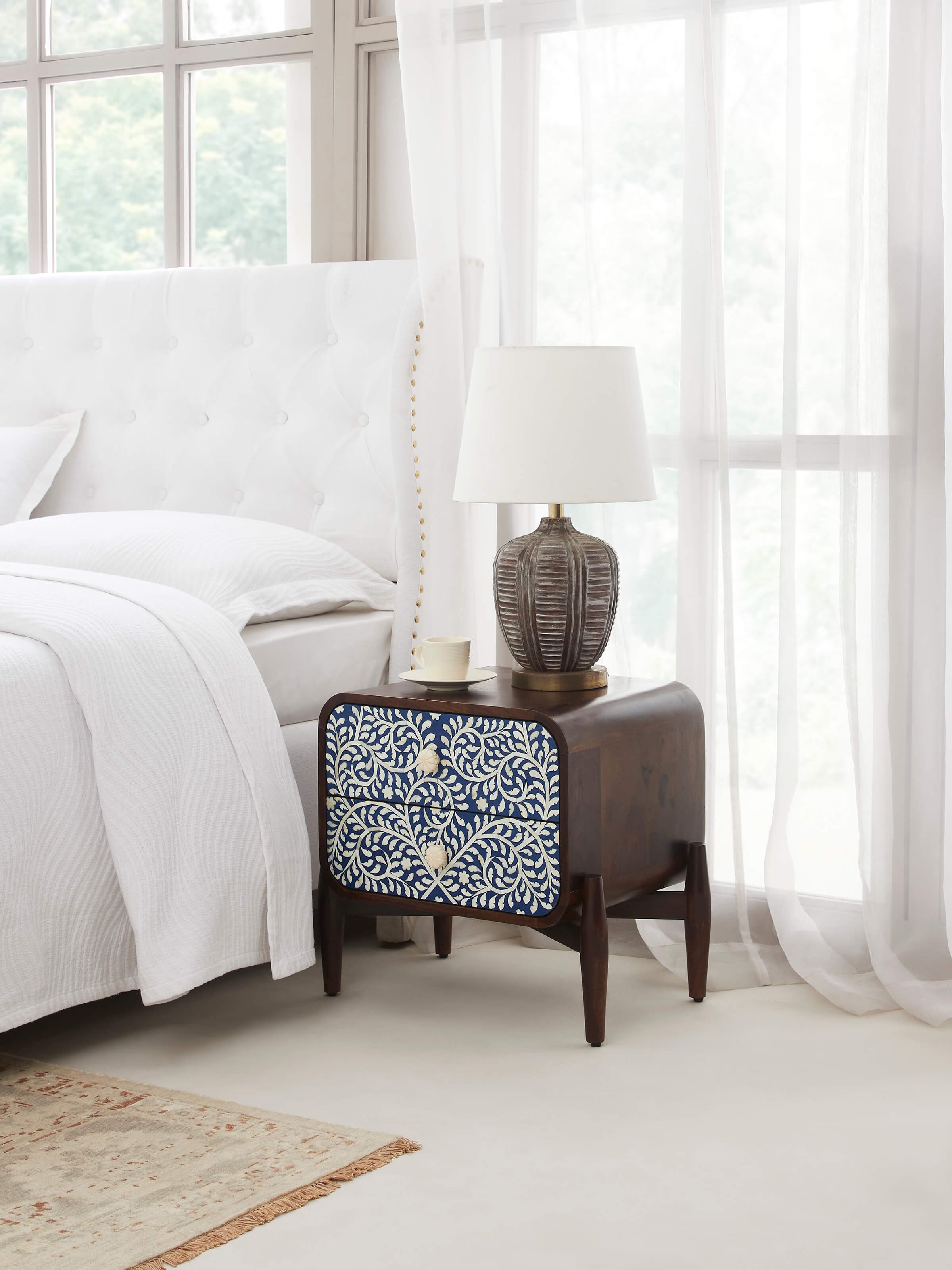 Bone Inlay Sheesham Wood Bedside Table 78