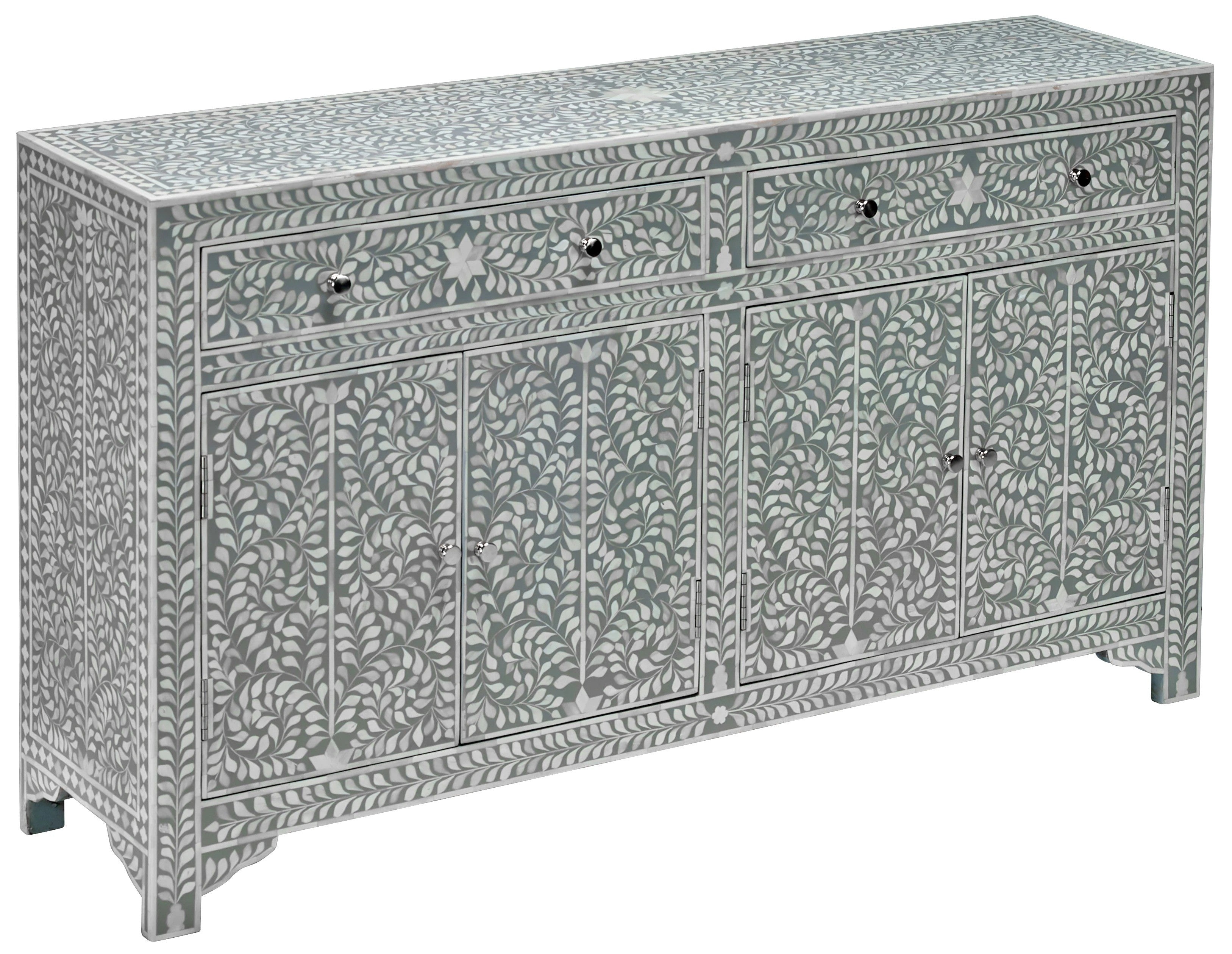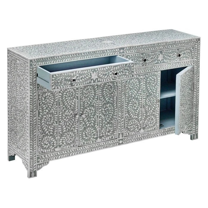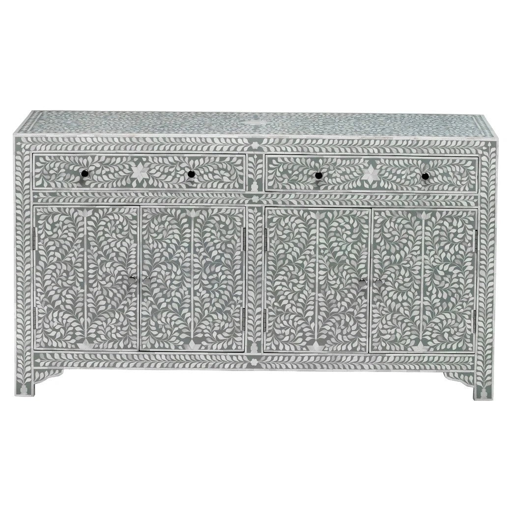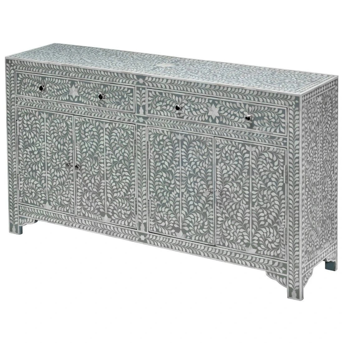 Bone Inlay Solid Wood Buffet Sideboard With 2 Top Drawer Grey
