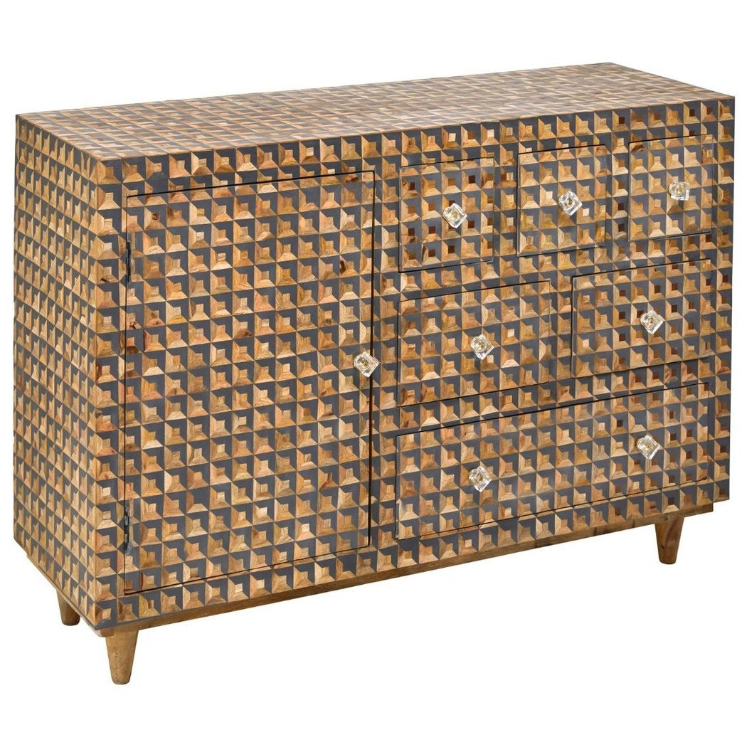 Bone Inlay Solid Wood Buffet Sideboard With 6 Drawers