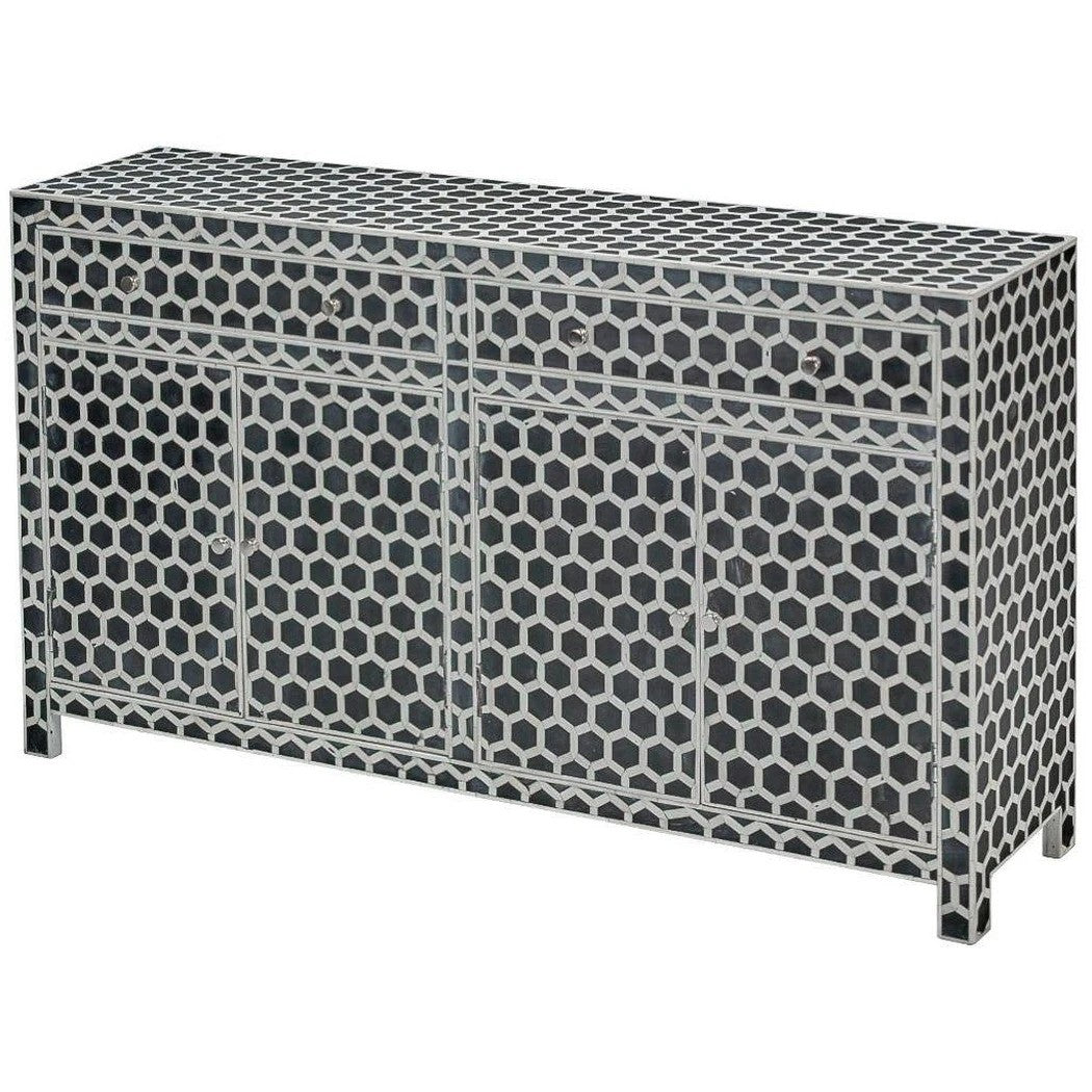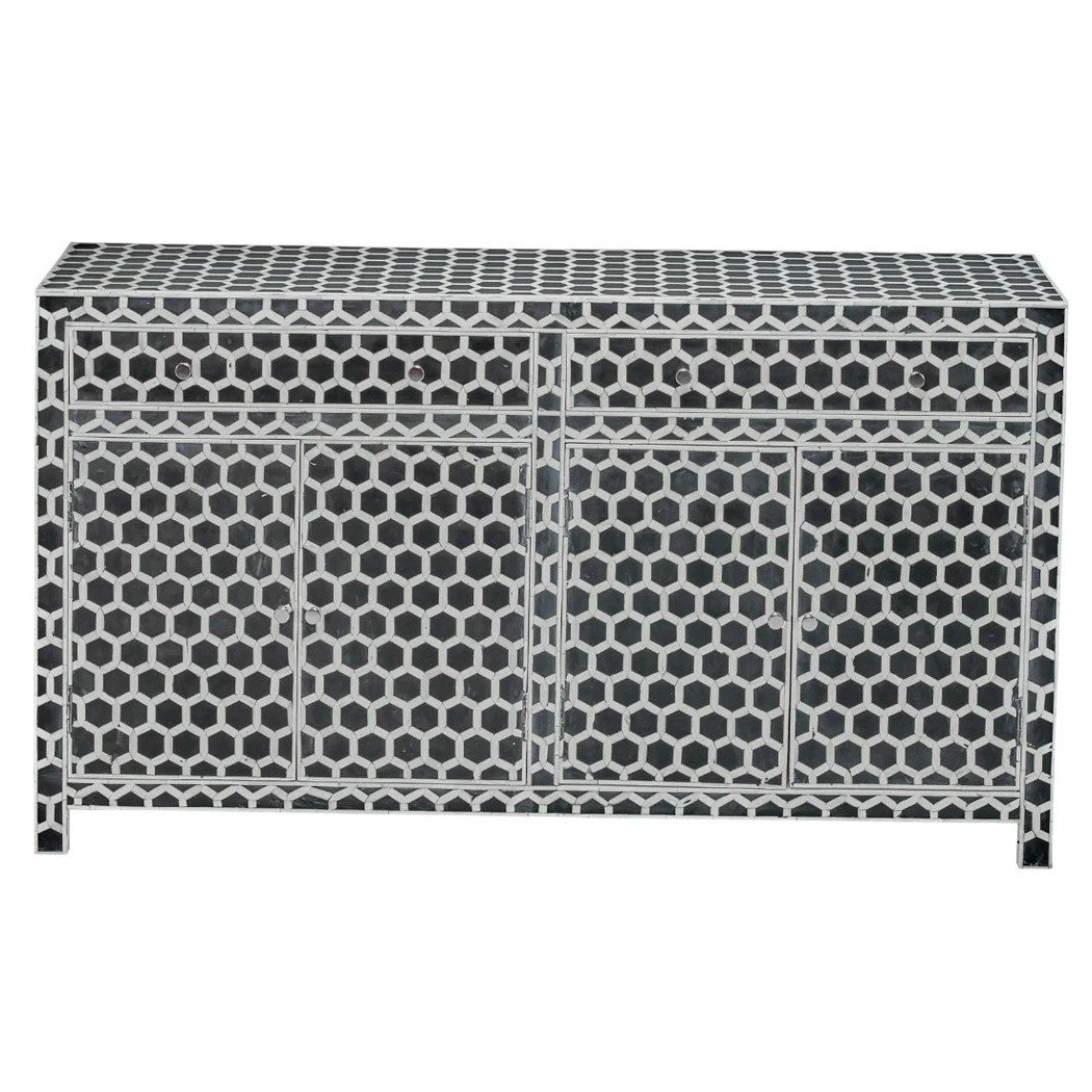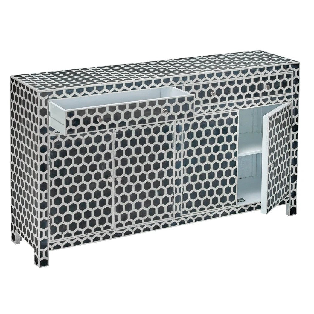 Bone Inlay Wooden Honeycomb 2 Drawer & 4 Door Sideboard Black And White
