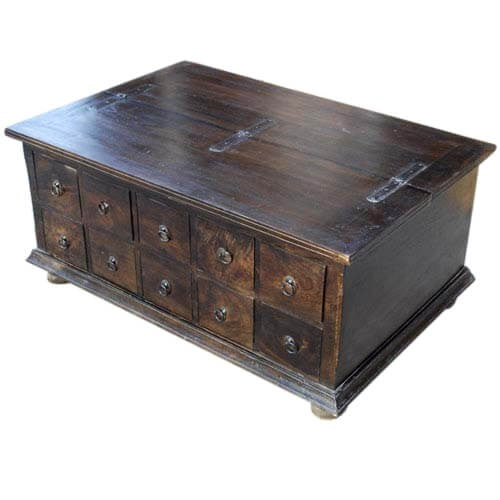 Boston Classic Wood Storage Coffee Table with 10 Drawers Chocolate Brown