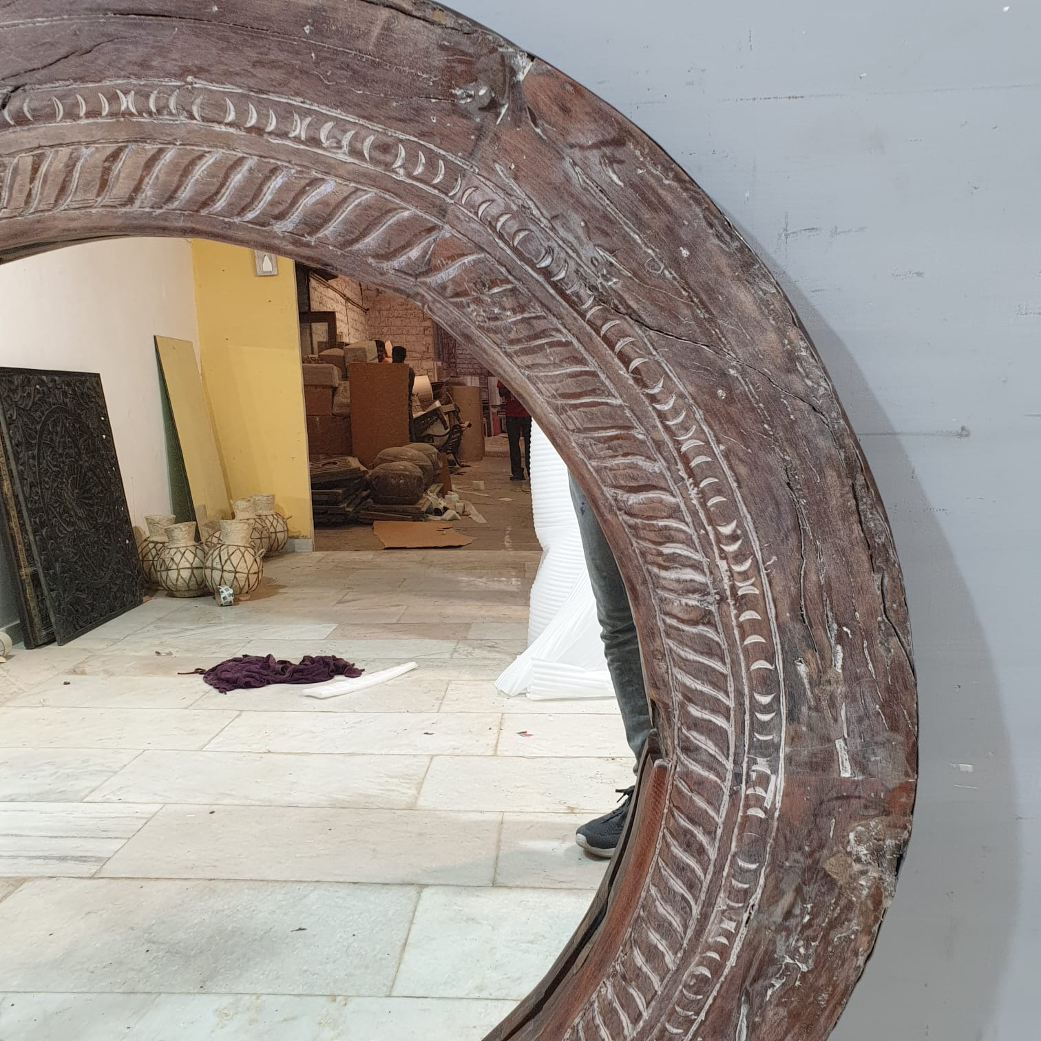 Indian Solid Wood Cart Wheel Mirror Frame 27