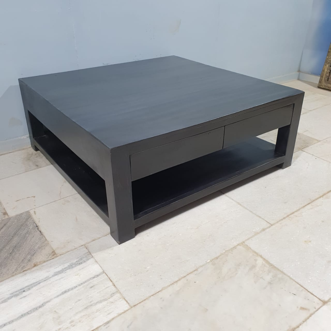 Boston Large Square Coffee Table Solid Wood Contemporary Style Black C103