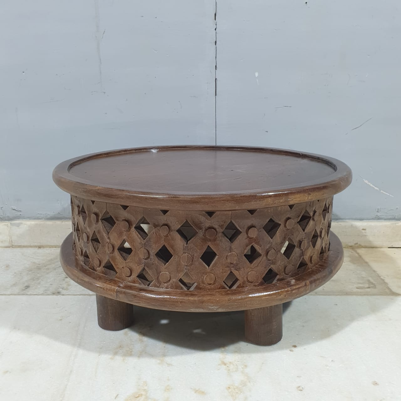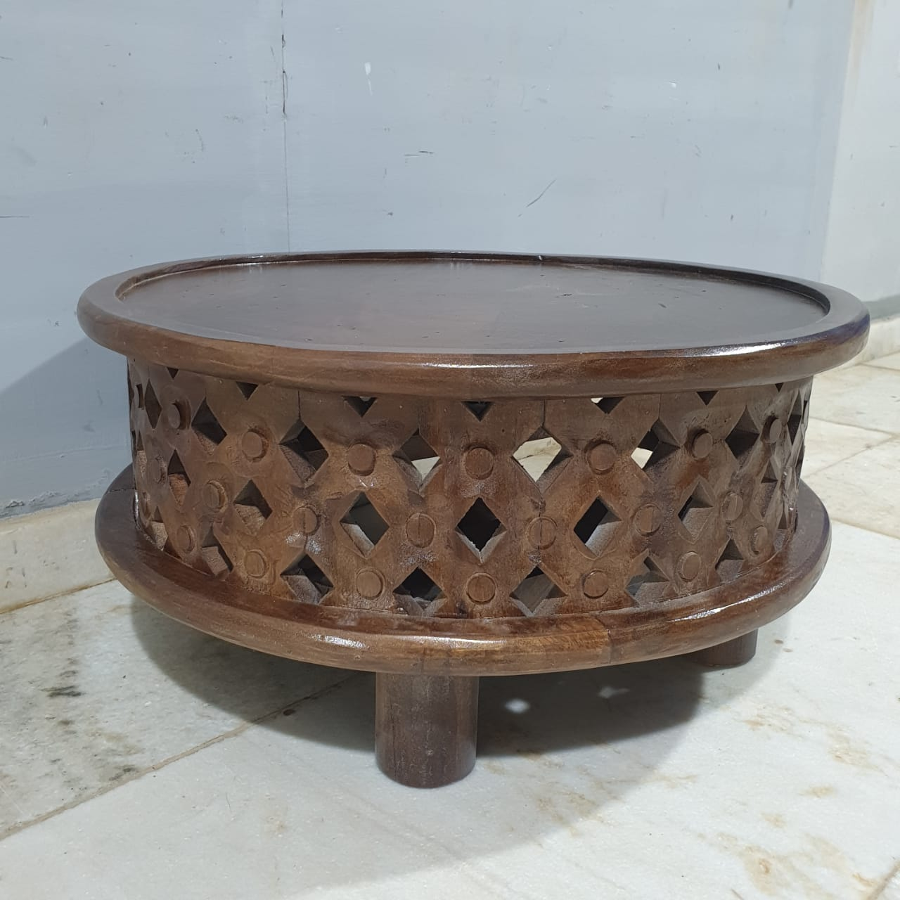 Bristol Bamileke Hand Carved Solid Wood Round Coffee Table C101