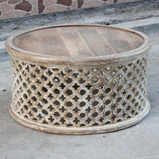 This listing includes : 1 x Bristol Solid Wood Low Line Round Coffee Table Floral Natural
