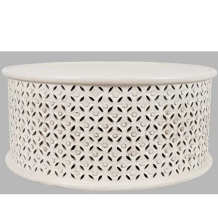Bristol Hand Carved Indian Solid Wood Round Coffee Table (White)