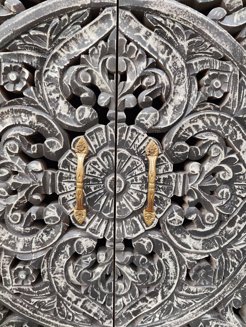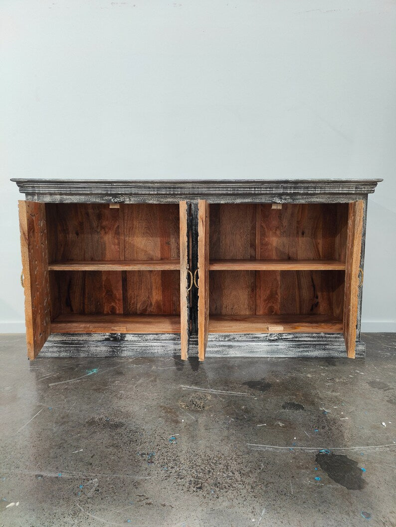 Carved Oasis Hand Carved Solid Mango Wood 4 Doors Sideboard Black Wash