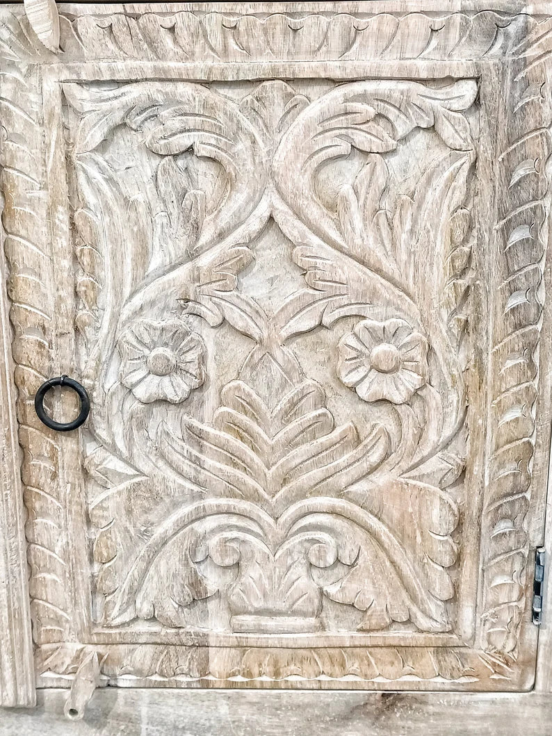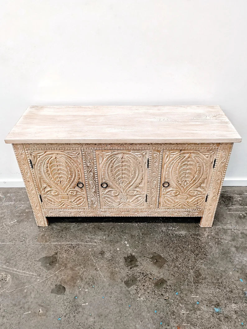 Carved Oasis Hand Carved Solid Mango Wood Wooden 3 Doors Sideboard