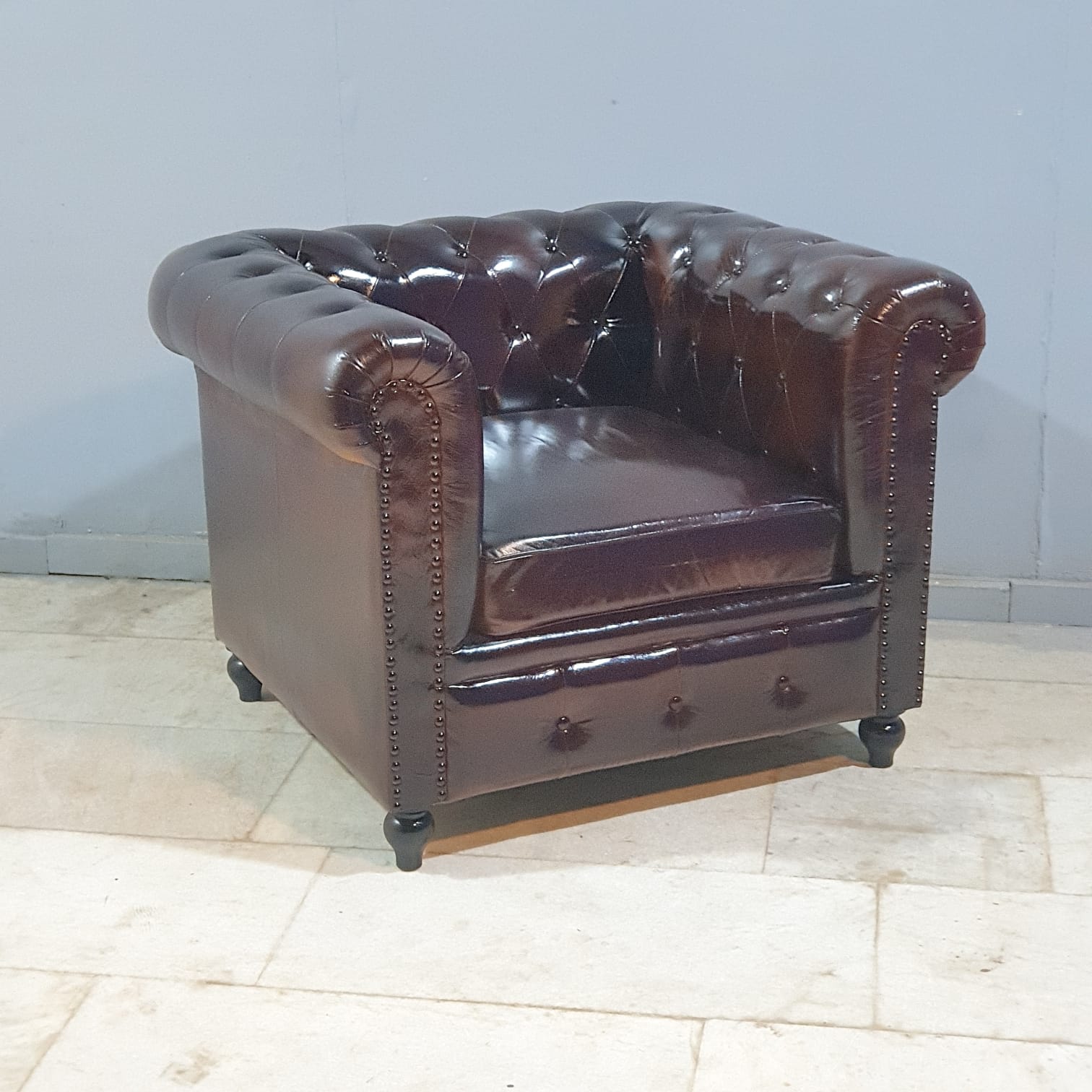 CHESTERFIELD Aged Leather Couch Lounge Single Seat Sofa