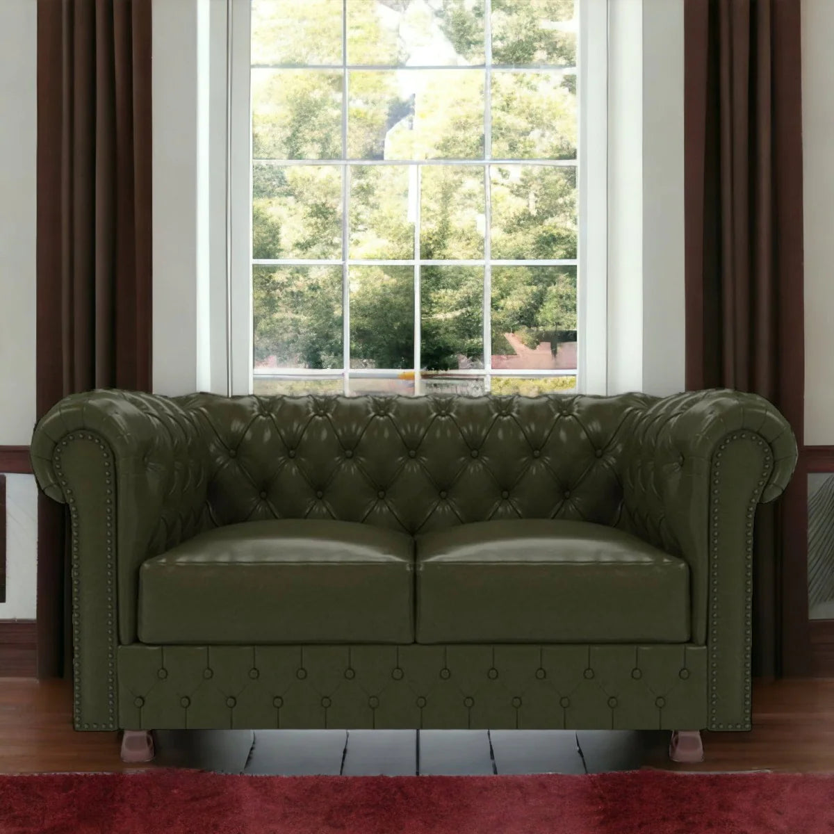 - Chesterfield-style tufted design and rolled arms add an air of timeless elegance.