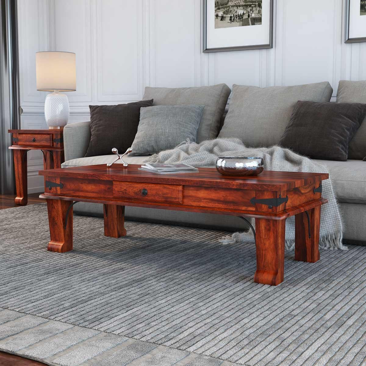 Avalon Rustic Solid Wood Coffee Table With Drawer