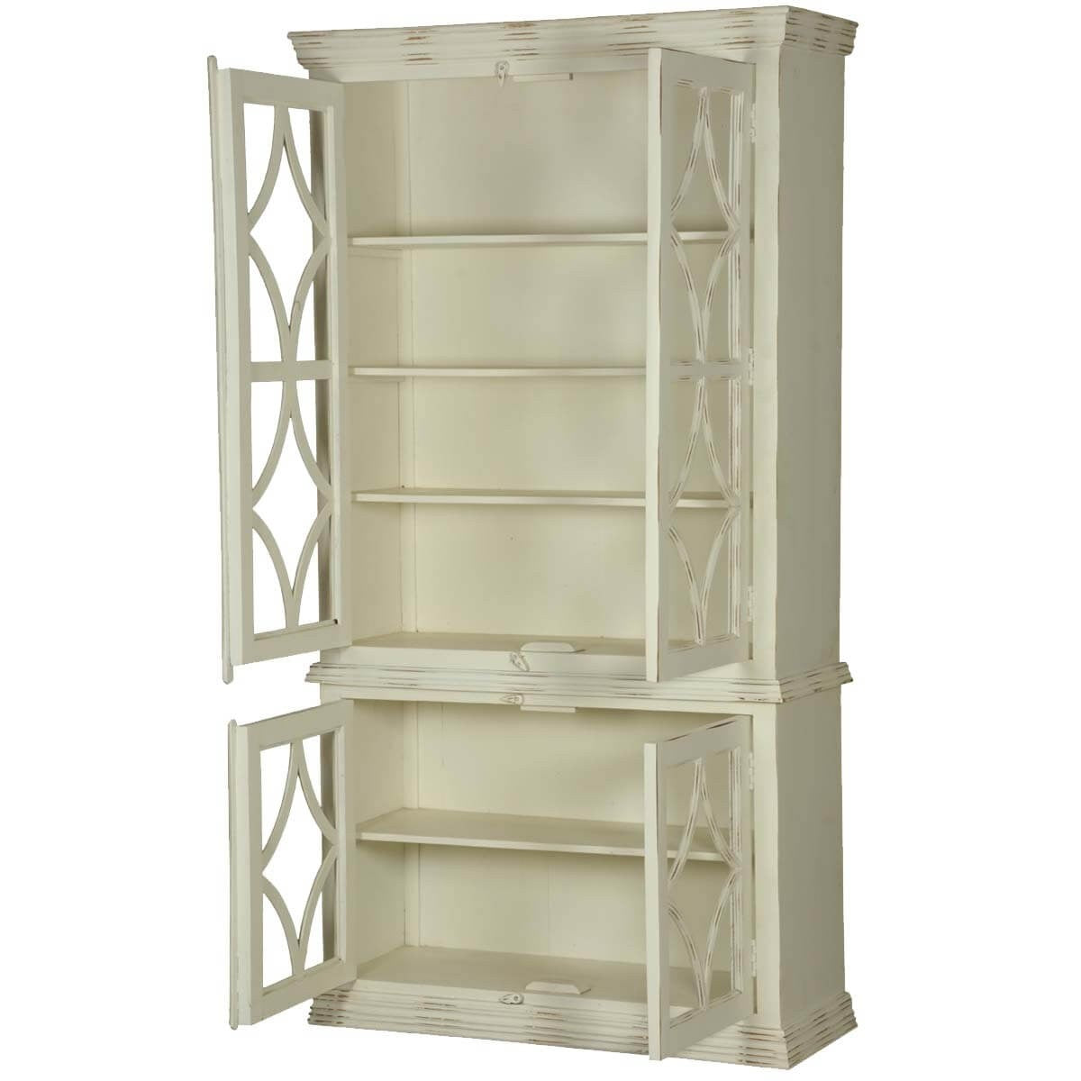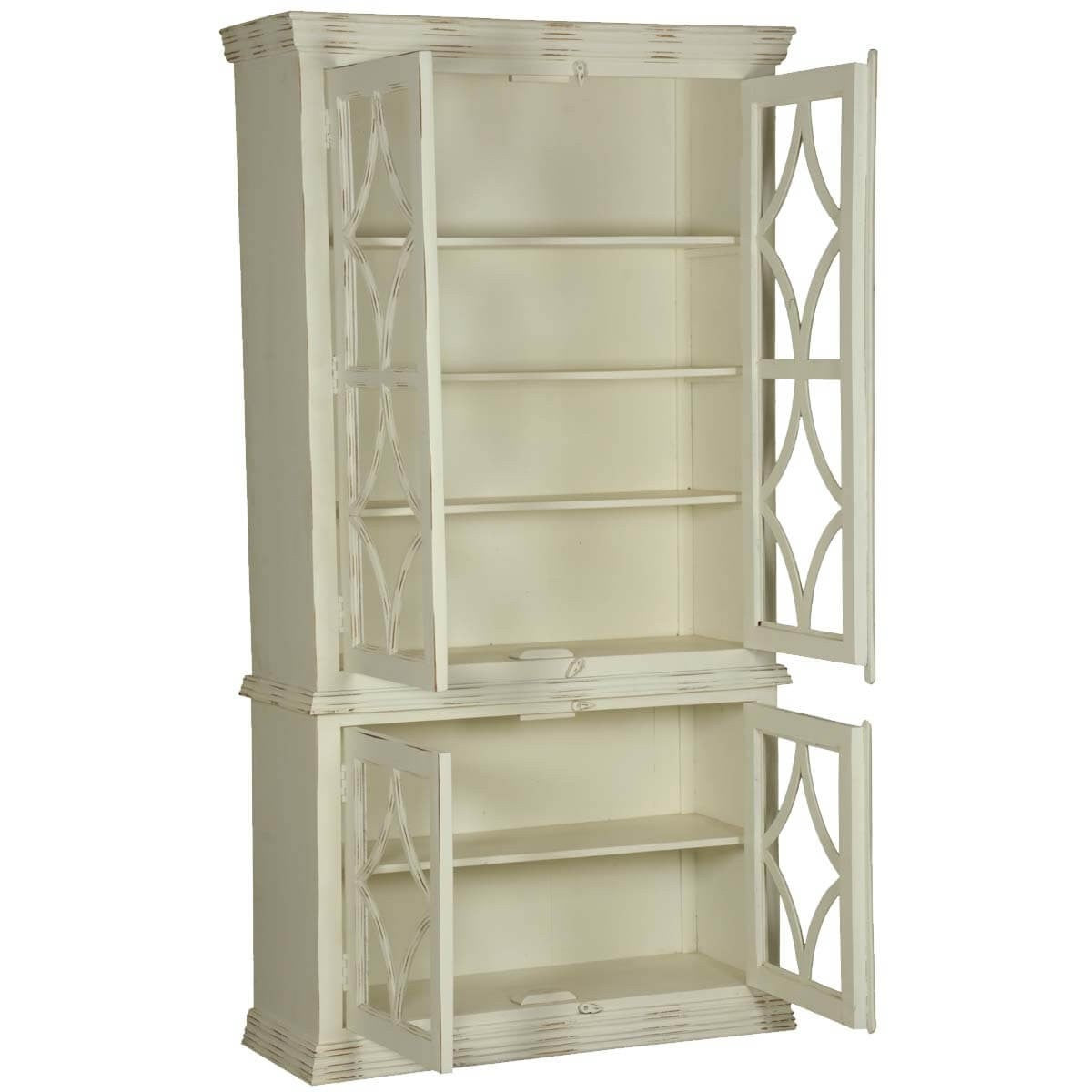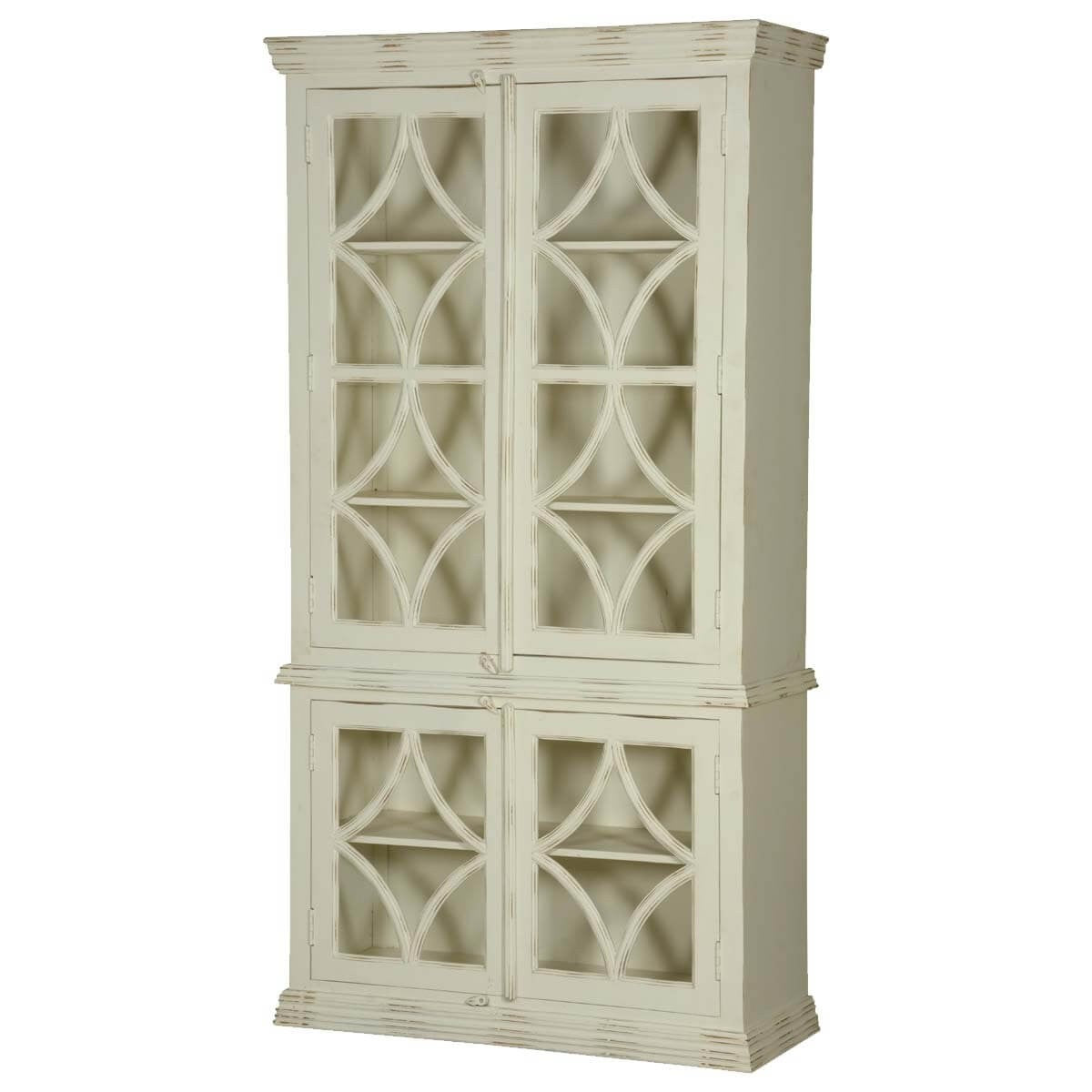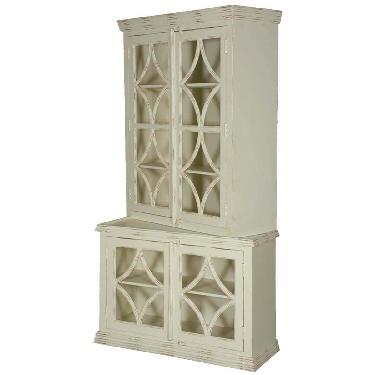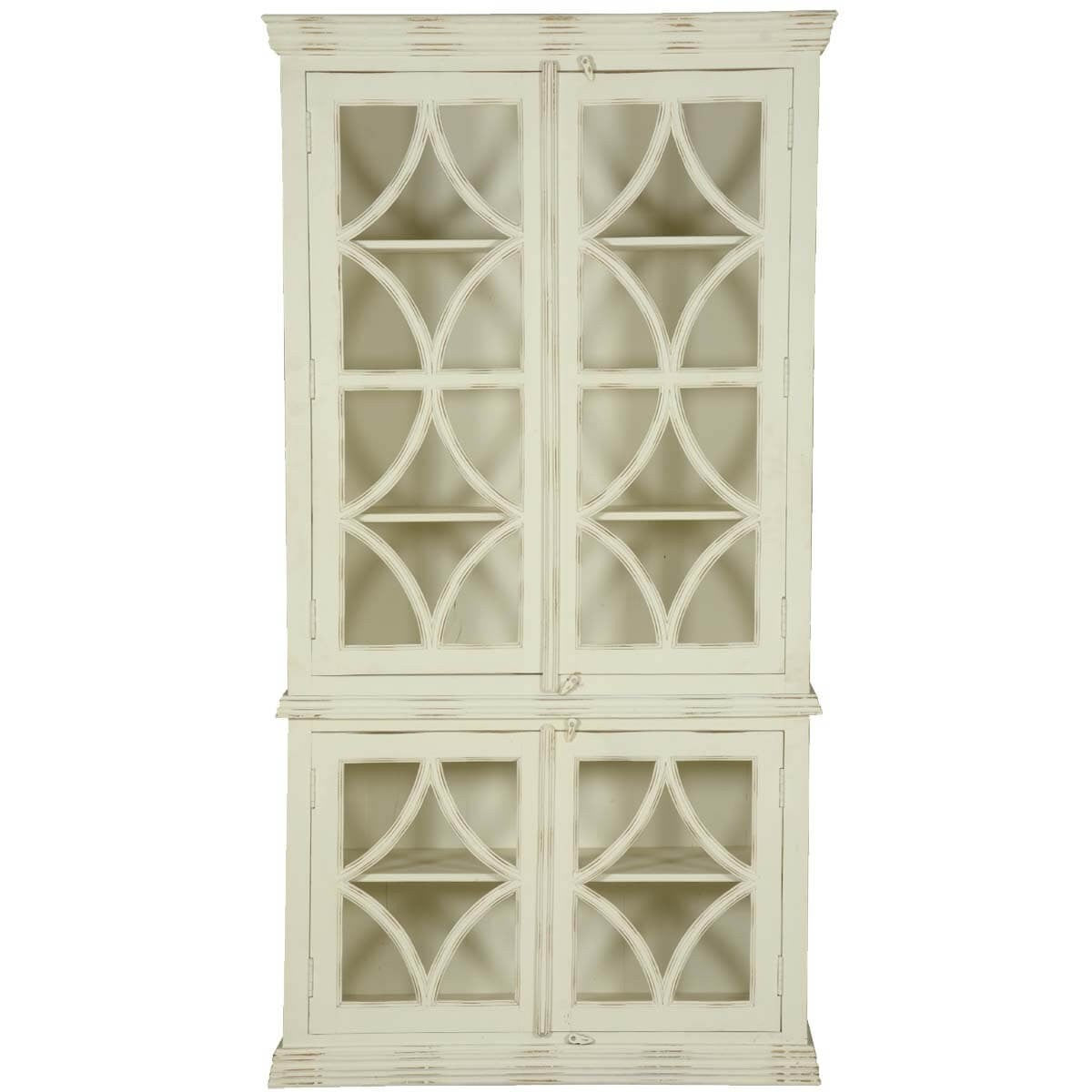 French Arched Diamonds Solid Mango Wood Display Cabinet Armoire With Shelves
