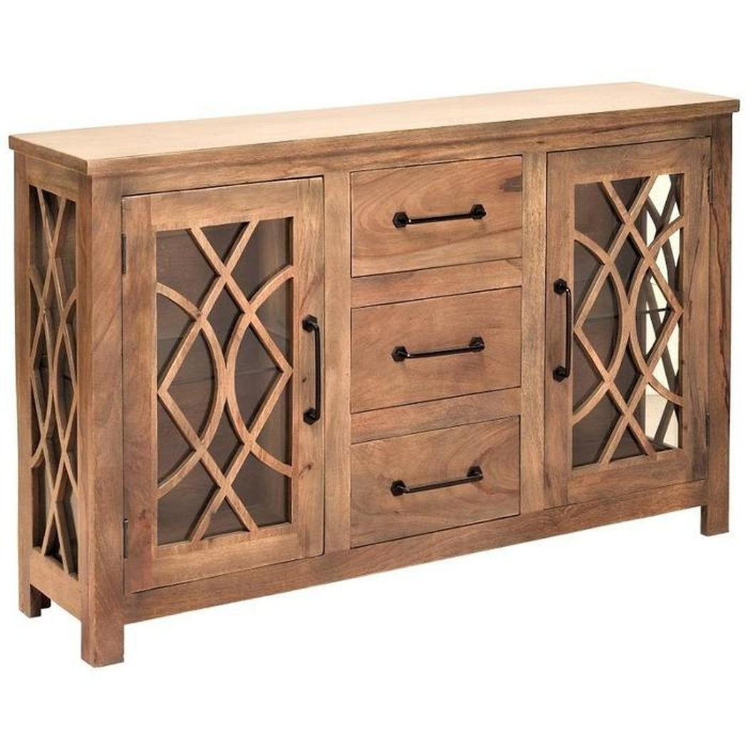 French Arched Indian Solid Wood Buffet With Glass Door And 3 Centered Drawers