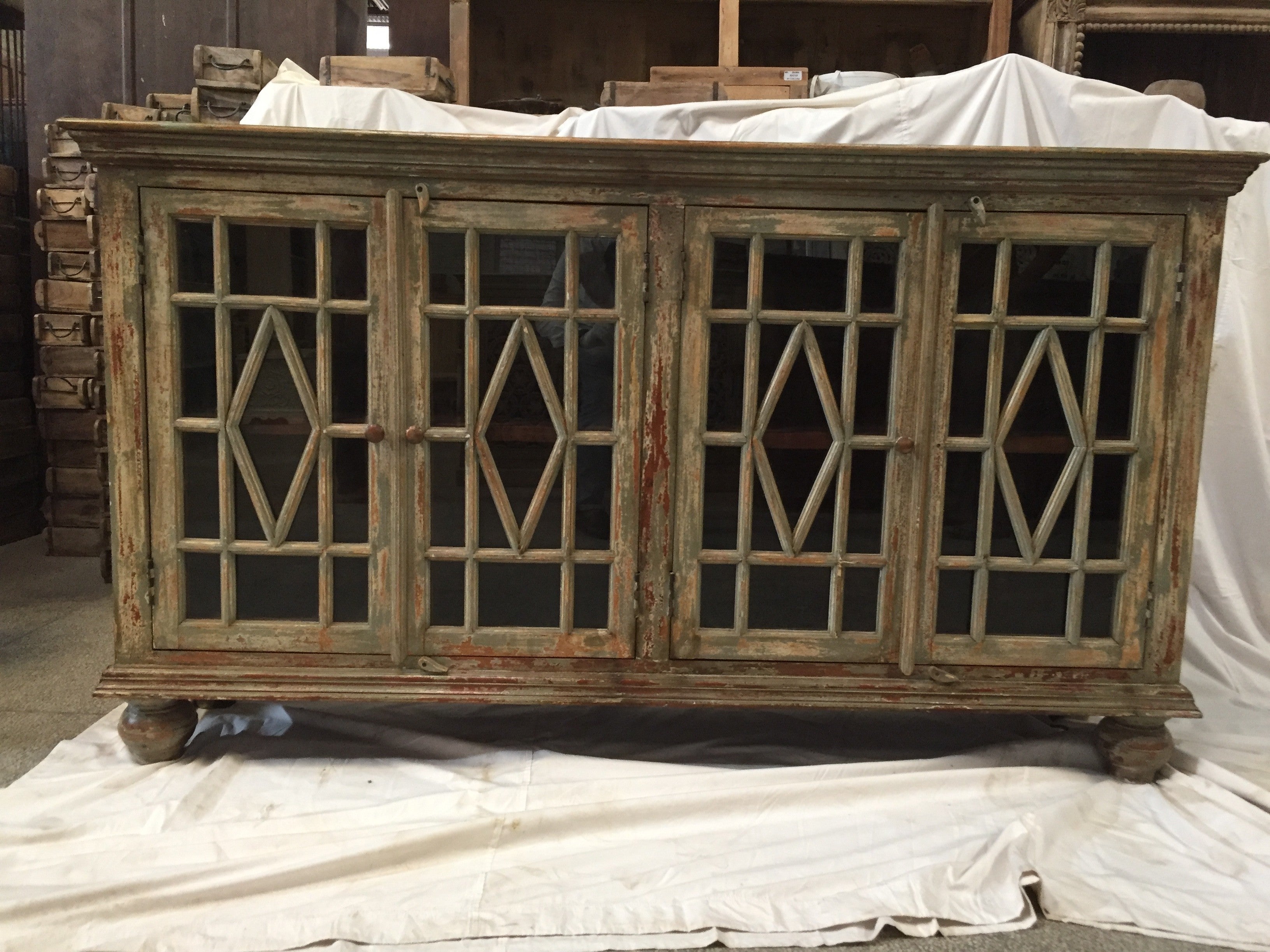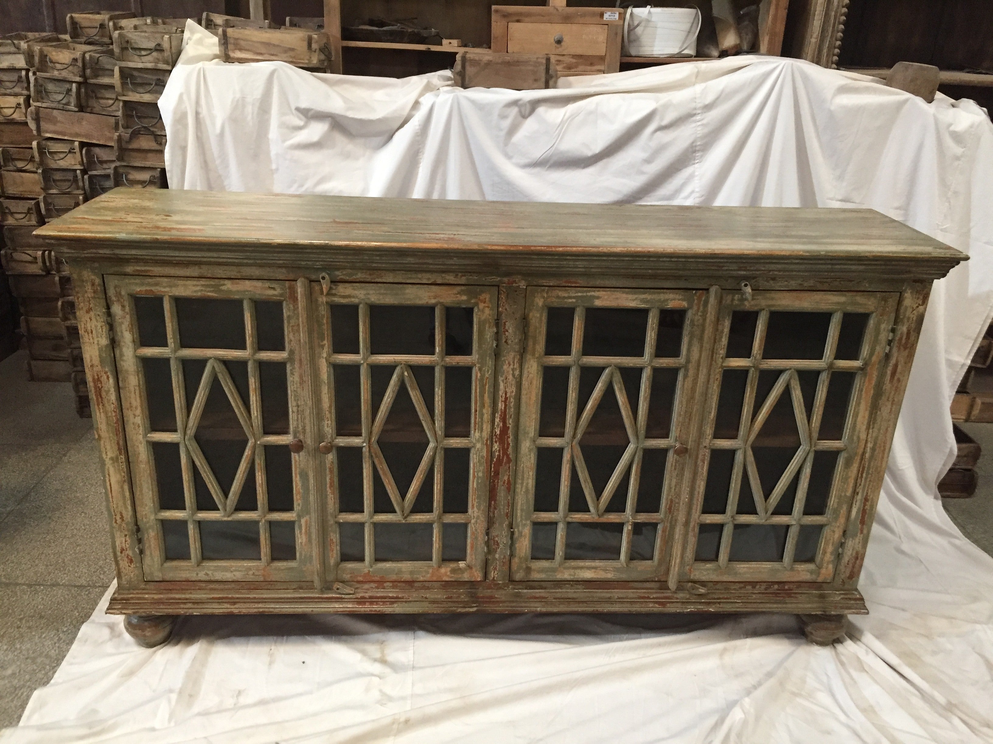 1 x Indian Solid Wood Jali Buffet Sideboard With Glass