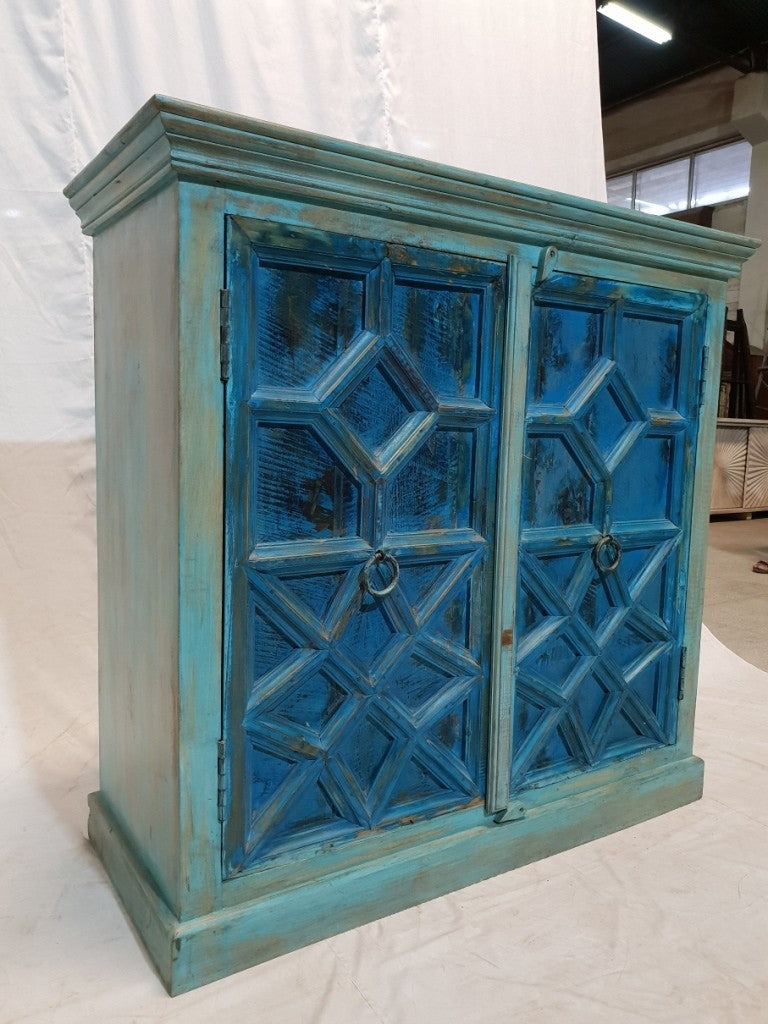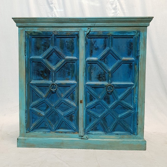 French Arched Hand carved Doors Buffet Sideboard Turquoise 107x45x103cm
