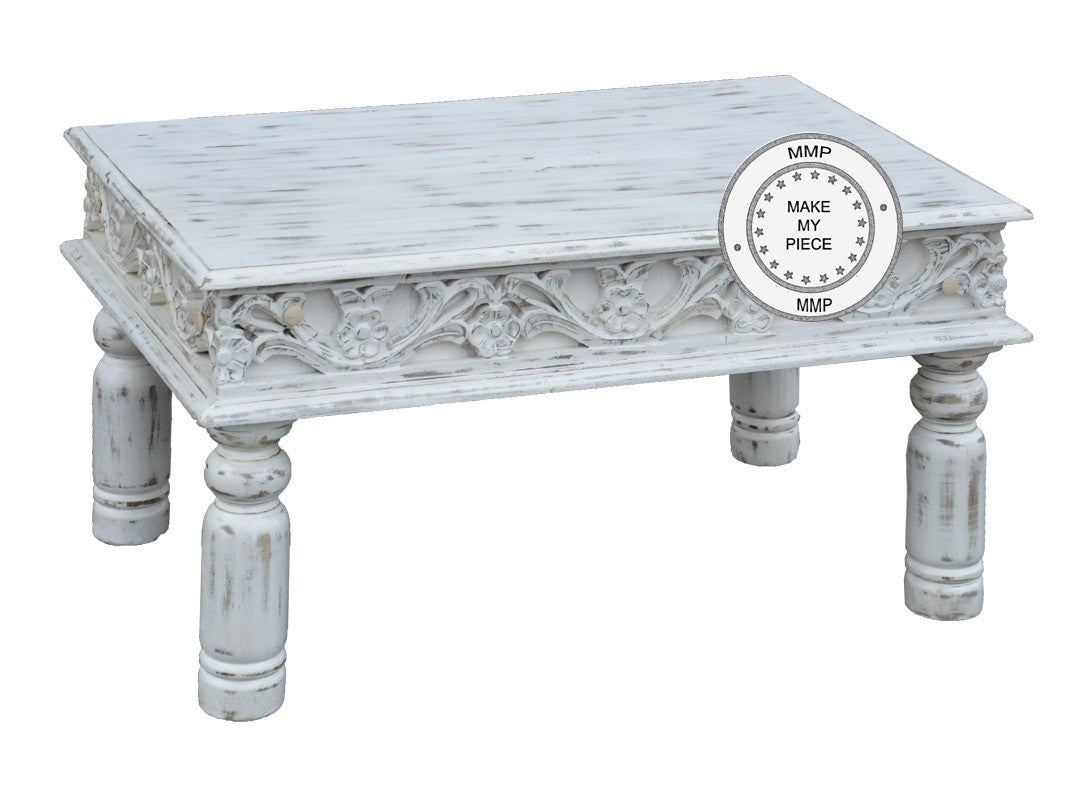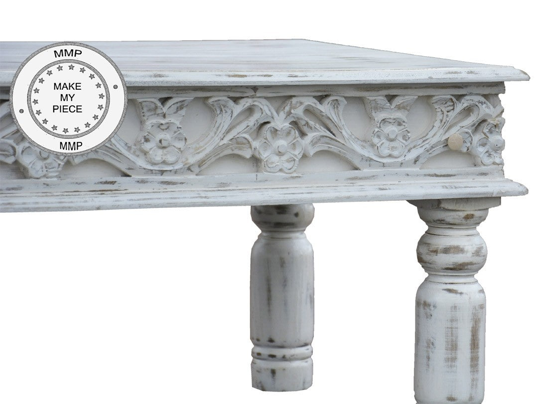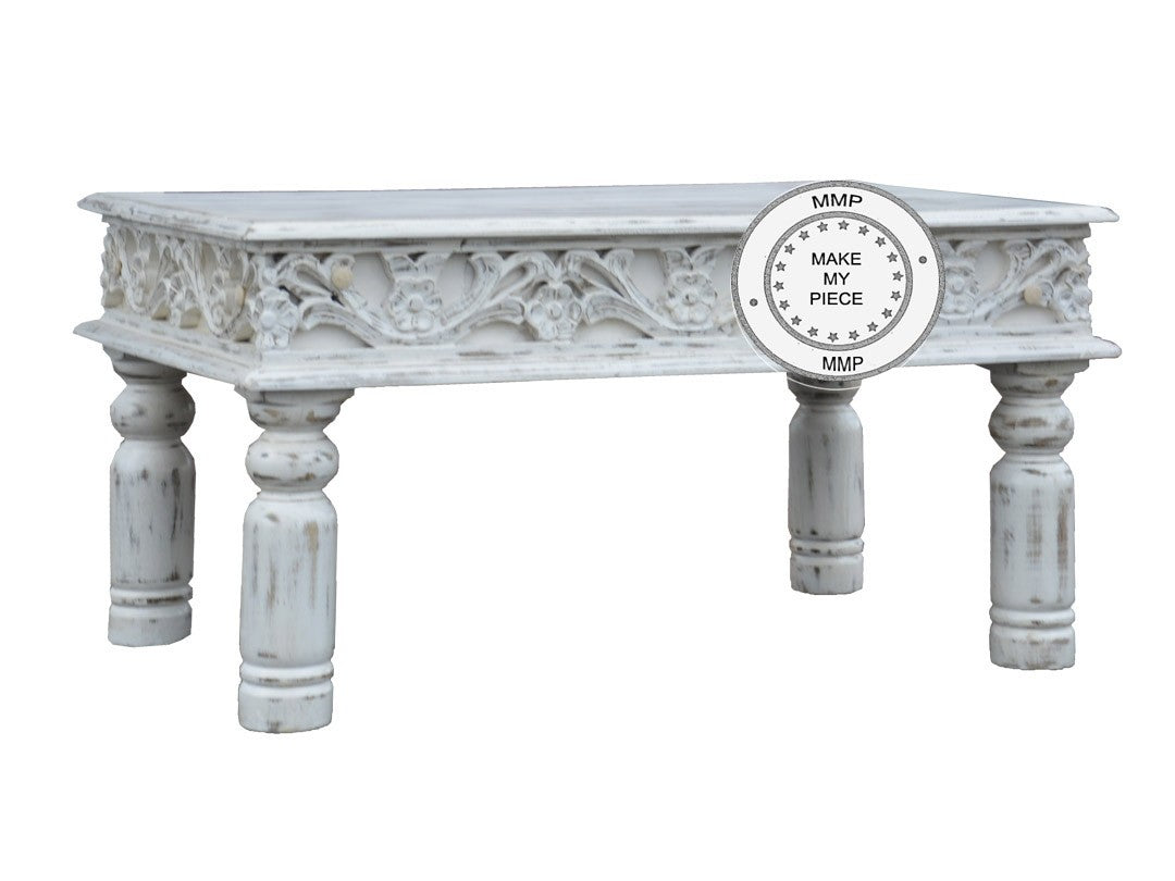Mandala Indian Hand Carved Solid Wood Coffee Table White