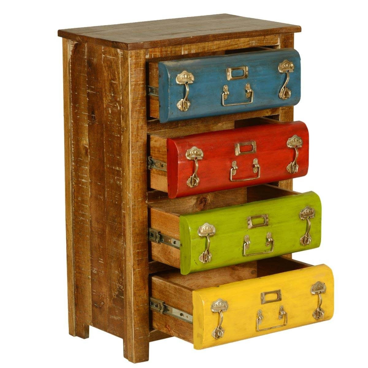 Industrial Indian Solid Wood Chest Of Drawers Multi Colored