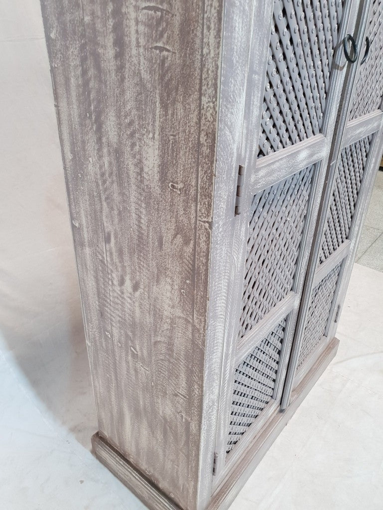 Antique Indian Jali carved Cabinet Pantry Cupboard White Rustic 90x40x183cm