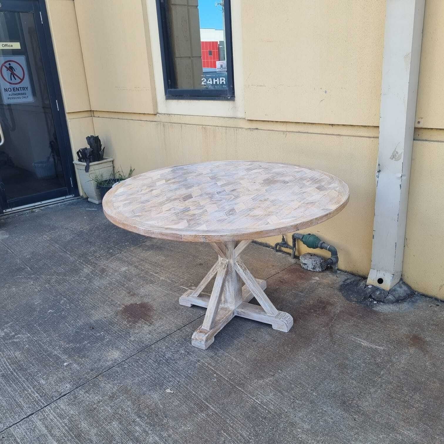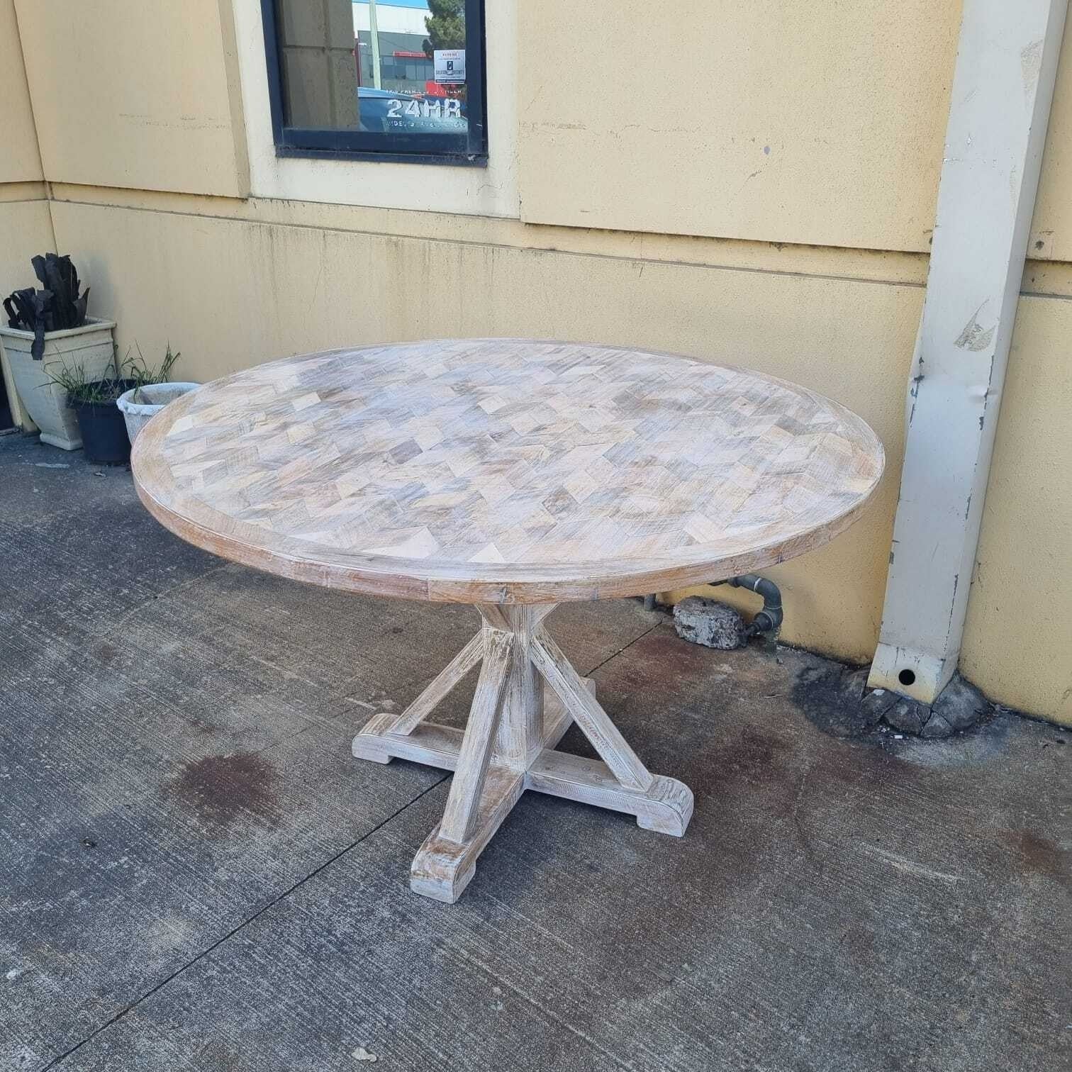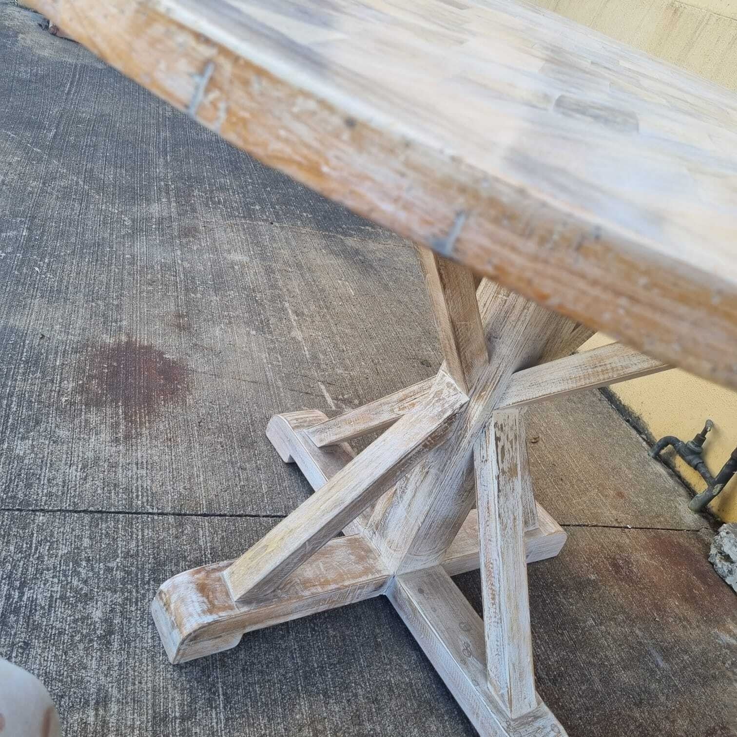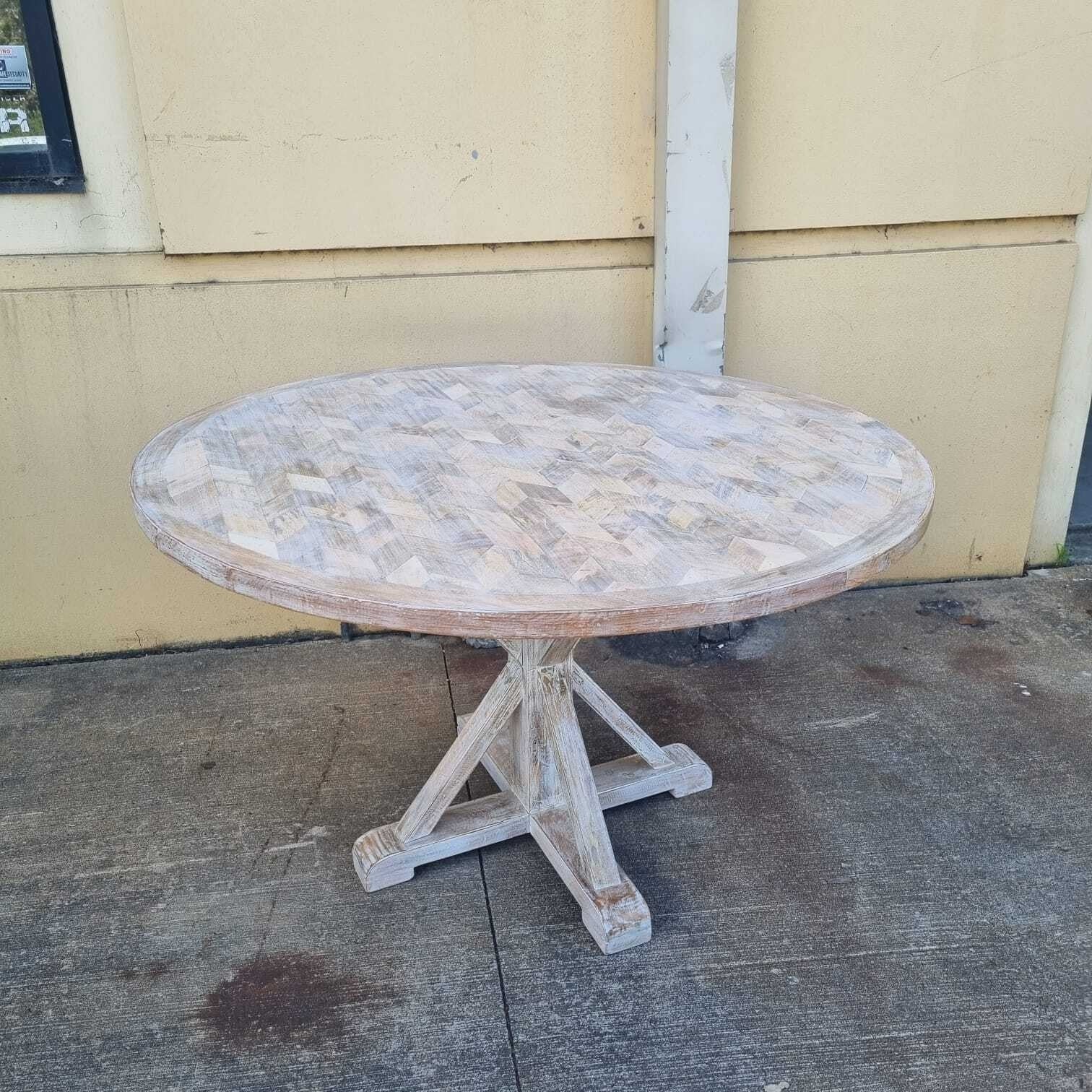 Handmade Indian Furniture Solid Hard Wood Round Whitewash Dining Table 130x130x76Cm