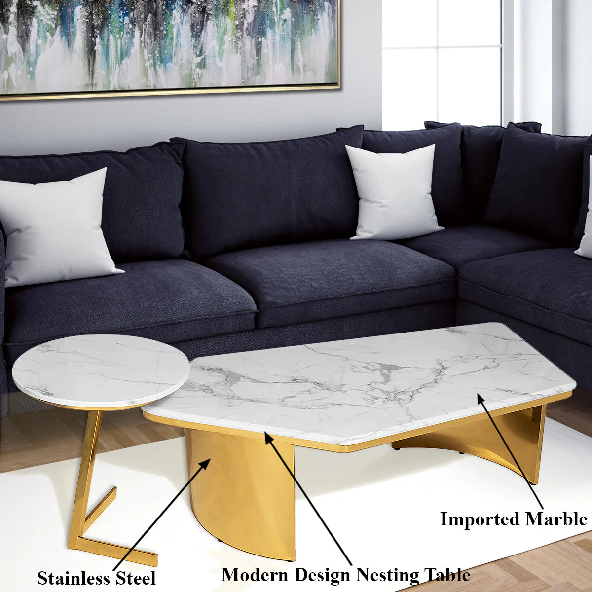 Opulent Orbit Centre Table for Living Room - Set of 2 (Stainless Steel)
