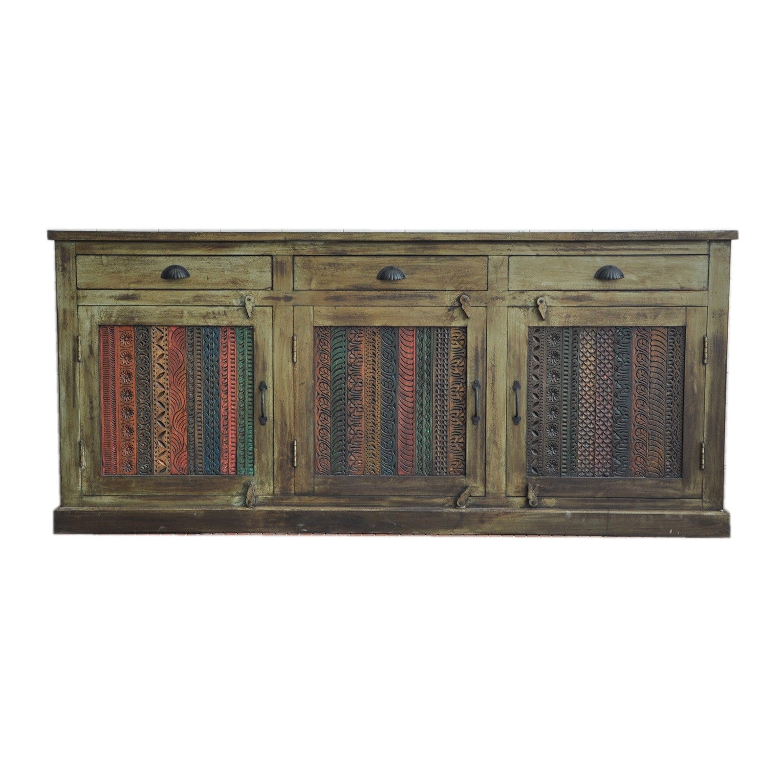 RAINBOW CARVED SOLID WOOD SIDEBOARD