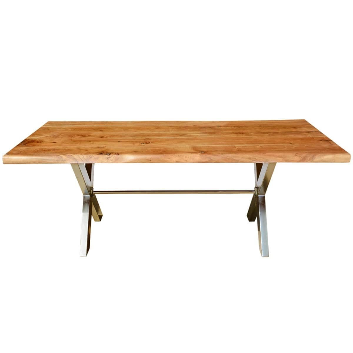 Industrial Cross Legs Solid Wood Live Edge Dining Table Natural