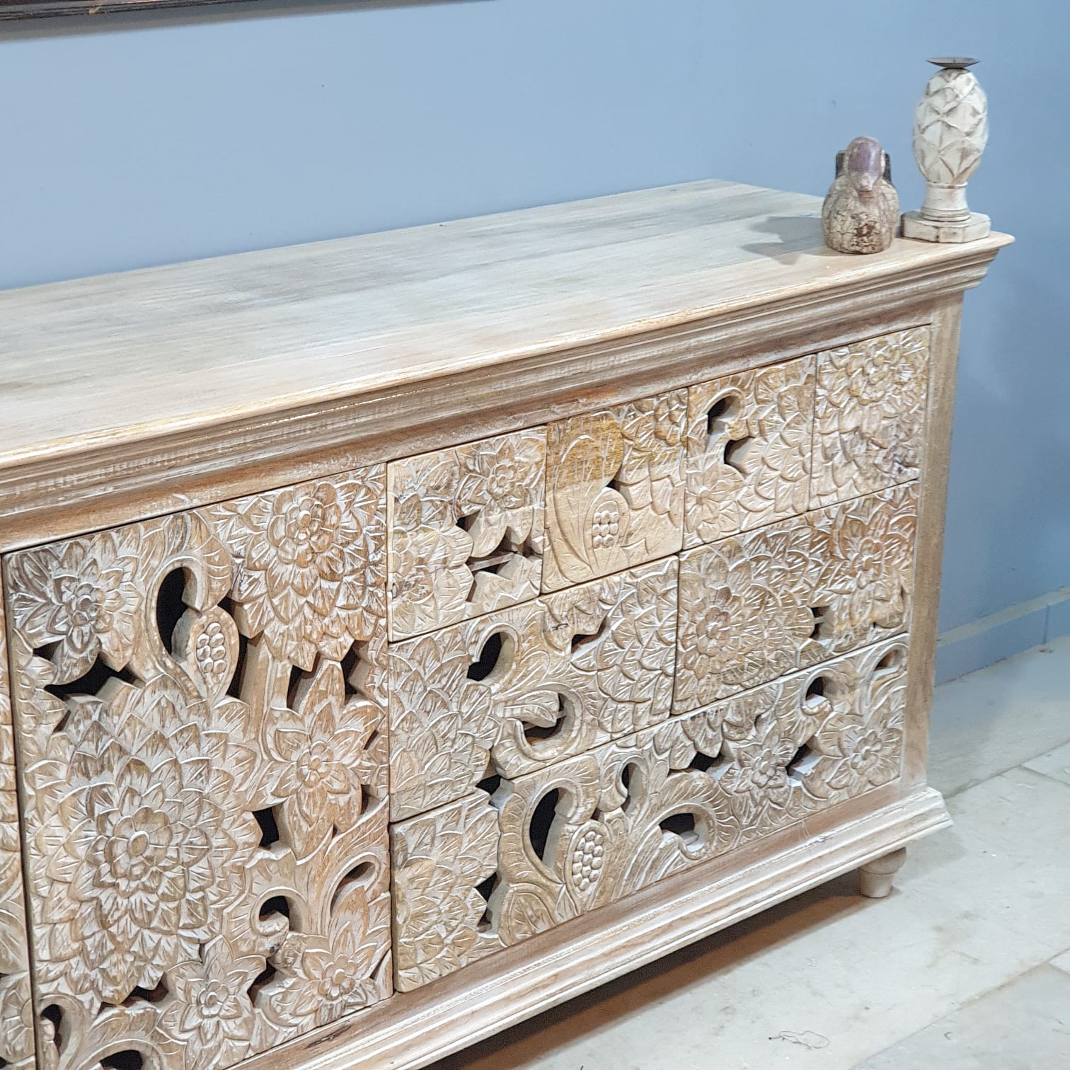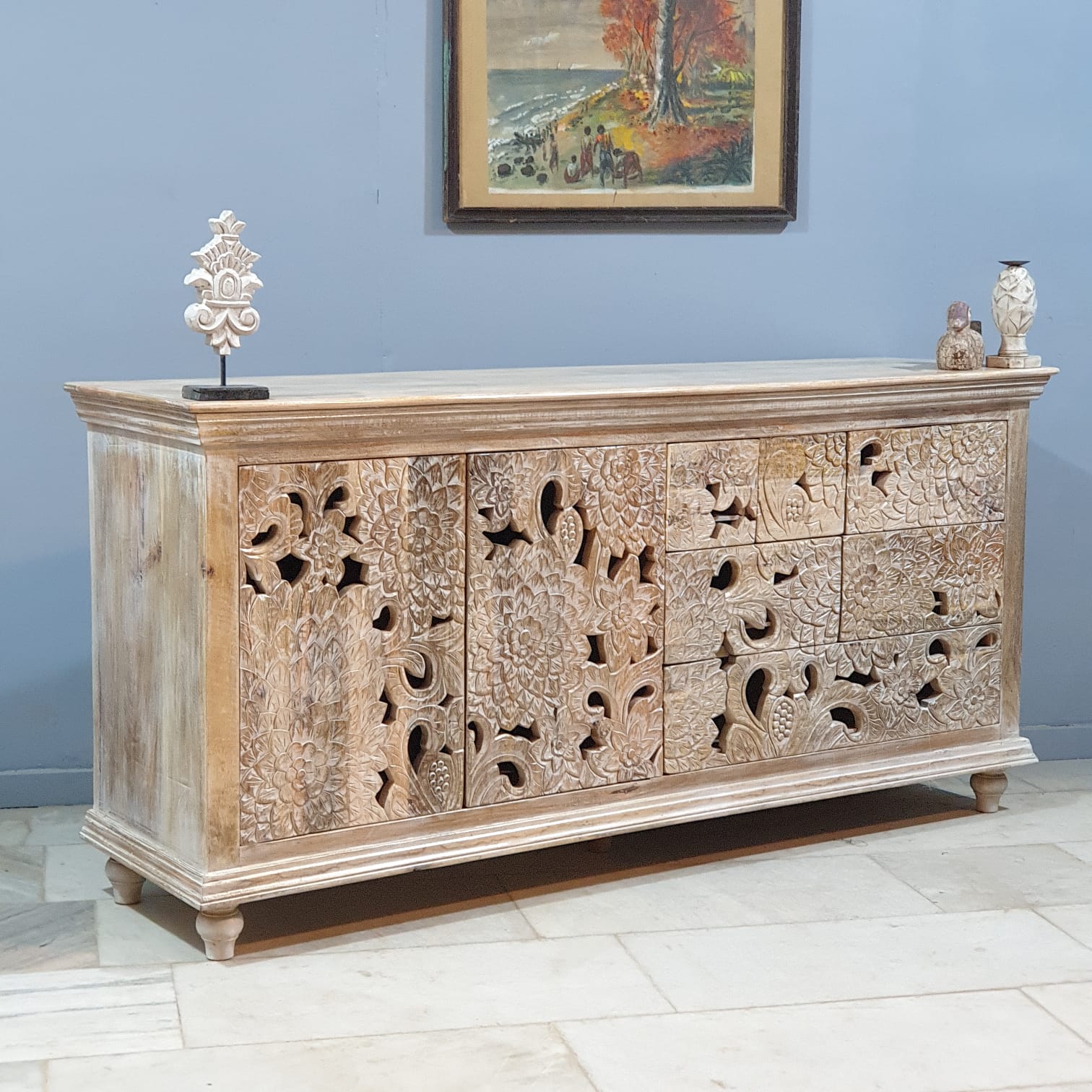 Corsica Contemporary Large Premium Solid Wood Floral Hand-Carving Sideboard C30