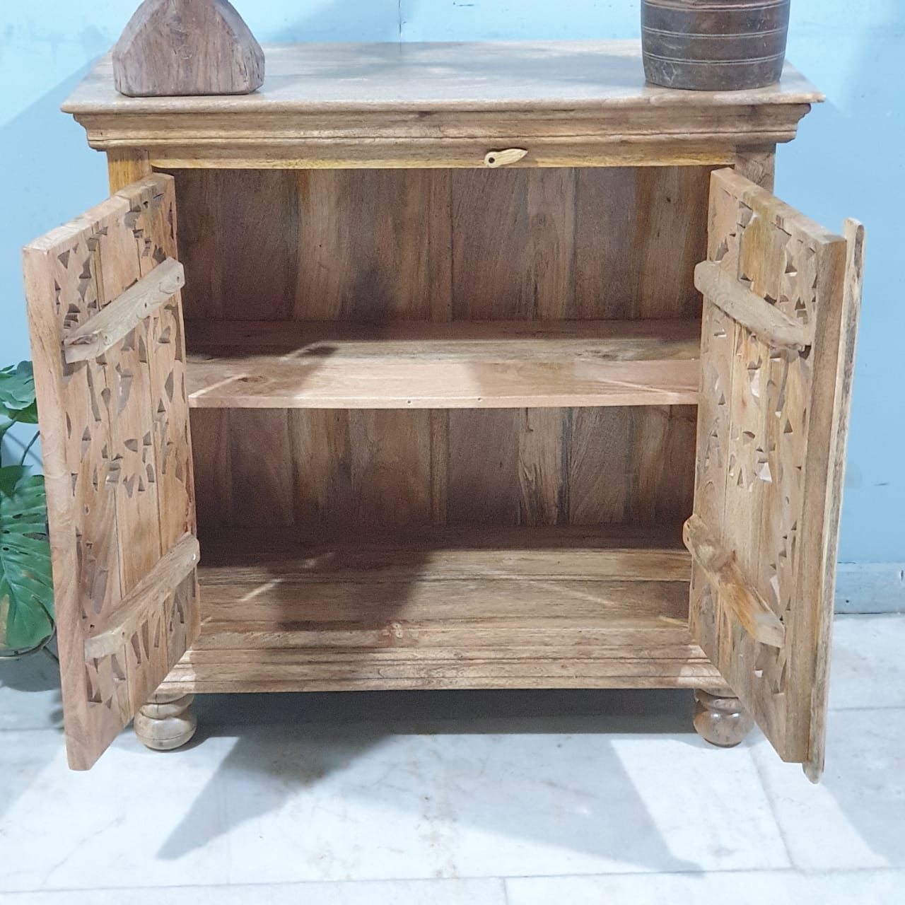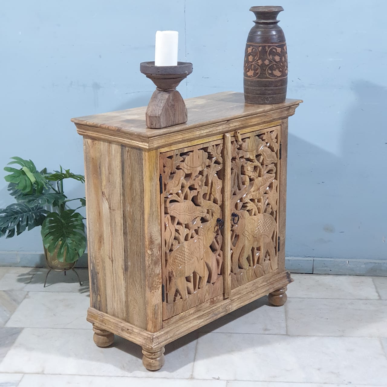 Elephant Carved Door design Solid Wood Cabinet Buffet 90X40X90 CM Brown