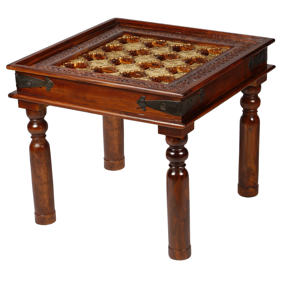 Embossed Antique Brass work Fitted Solid wood Indian Side Table Brown 60x40x75cm