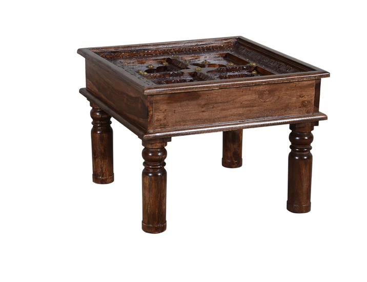 Embossed Antique Brass work Solid wood Indian Side Table Brown 60x60x45cm