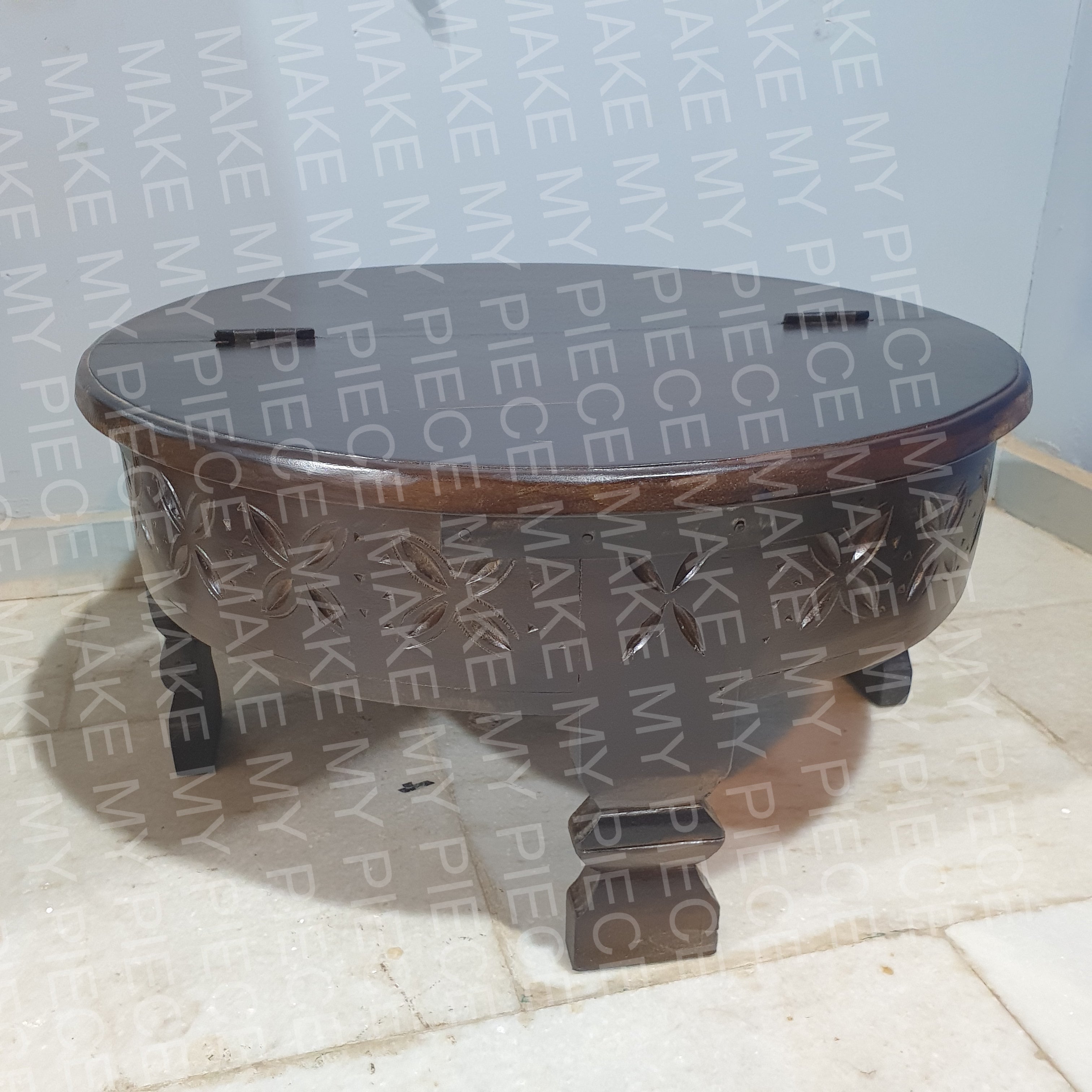 FARHANA Tribal Grinder Round Coffee Table Dark Brown