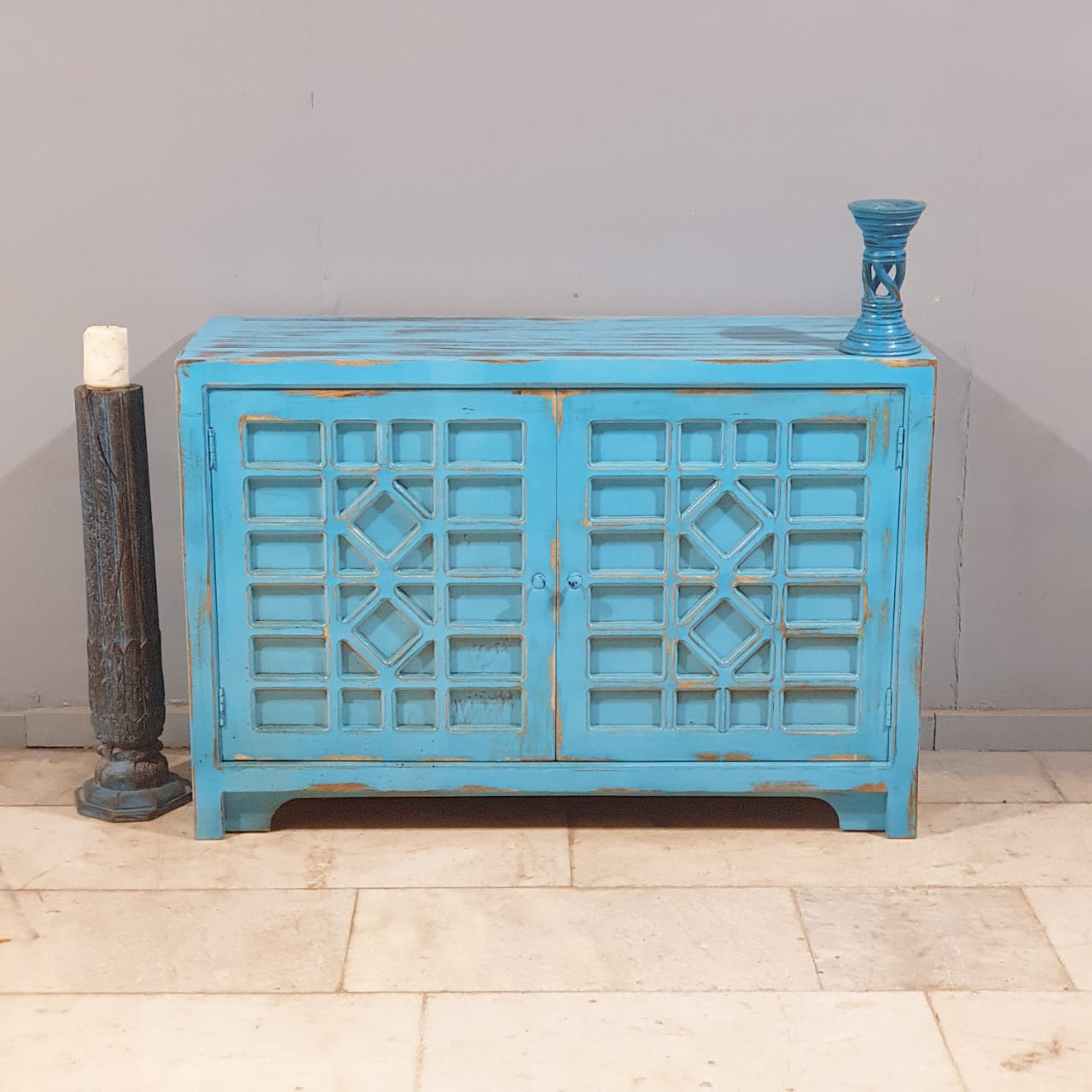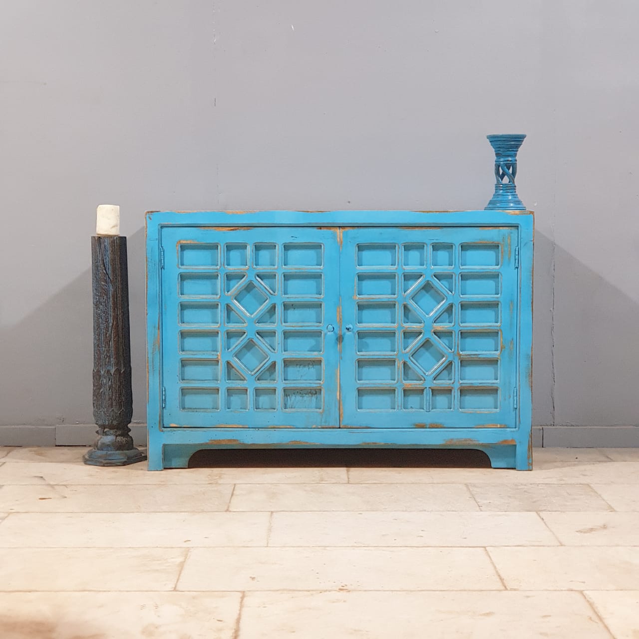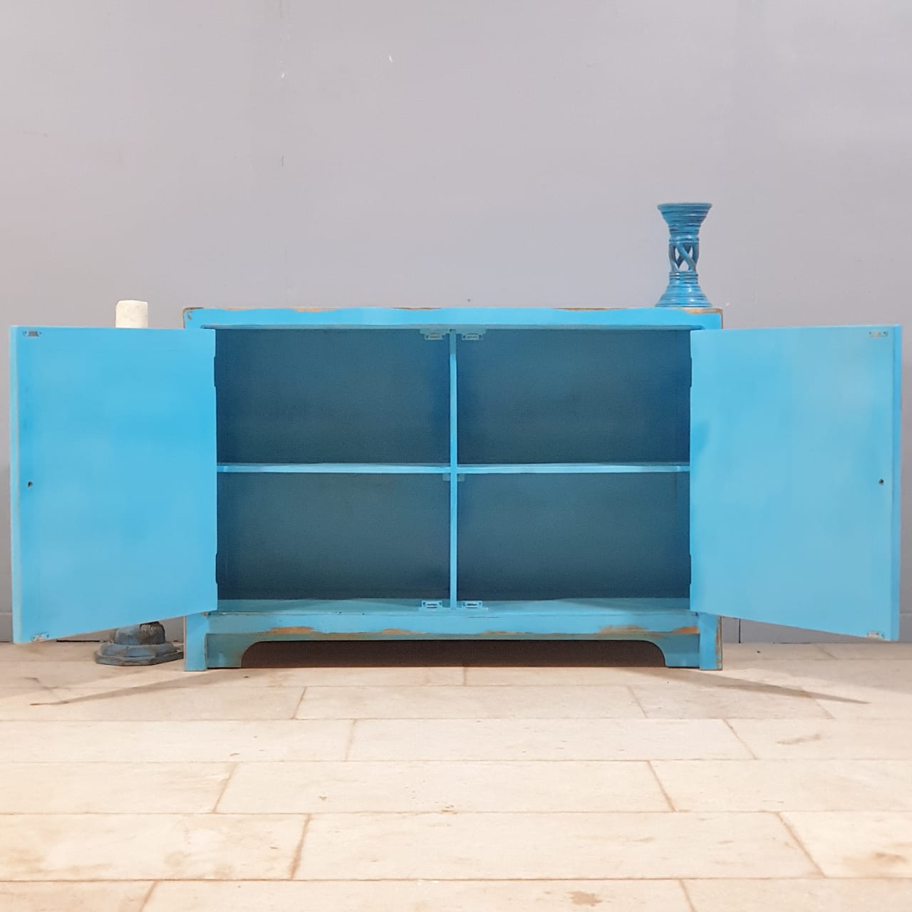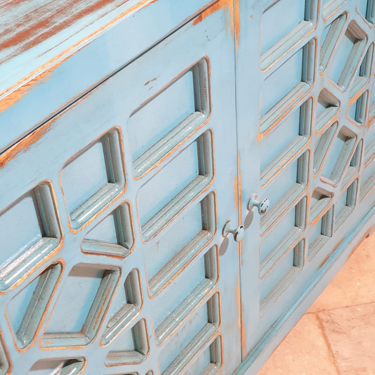French Arched Hand carved Doors Buffet Sideboard Turquoise C29