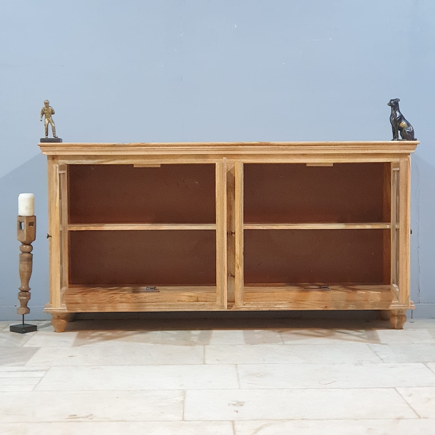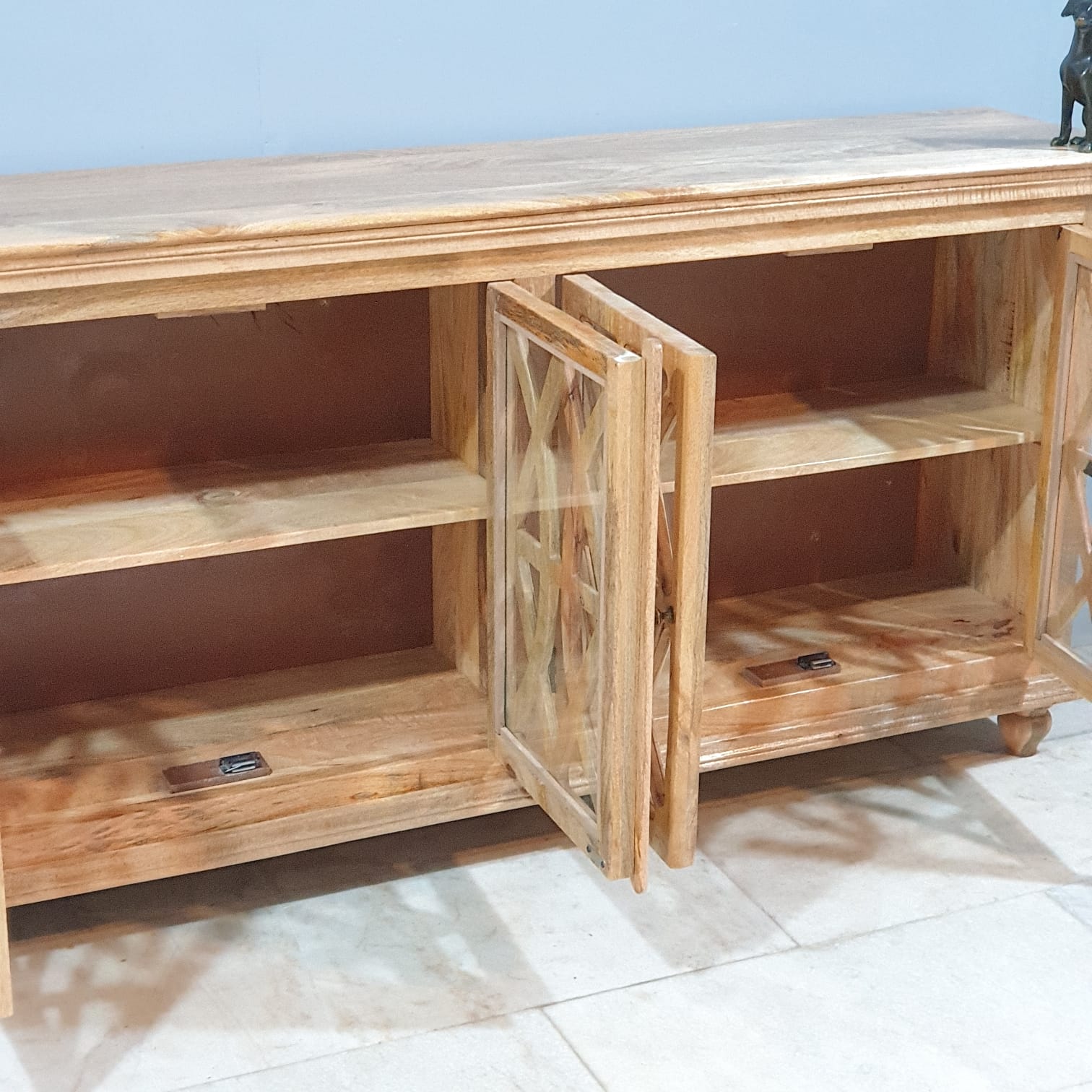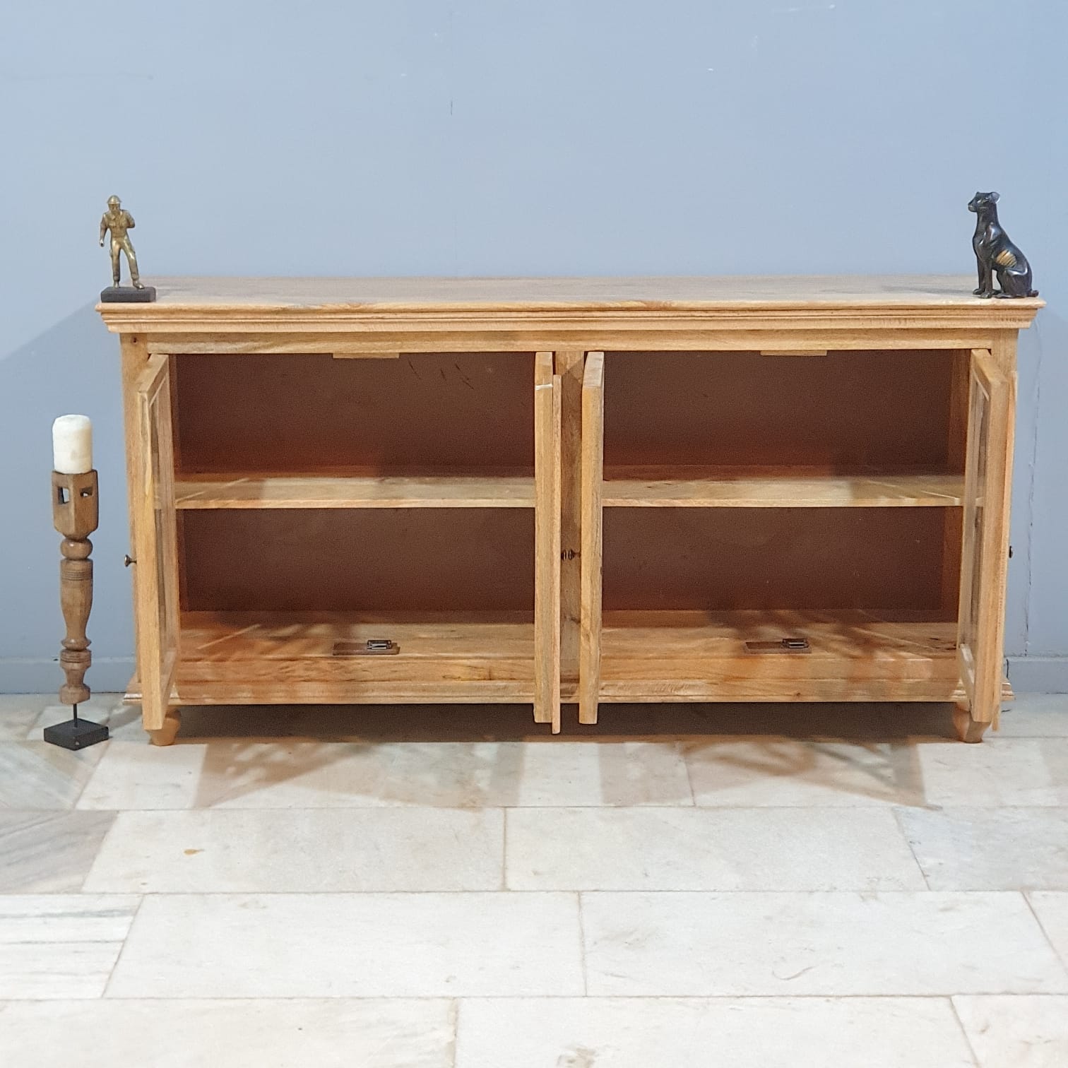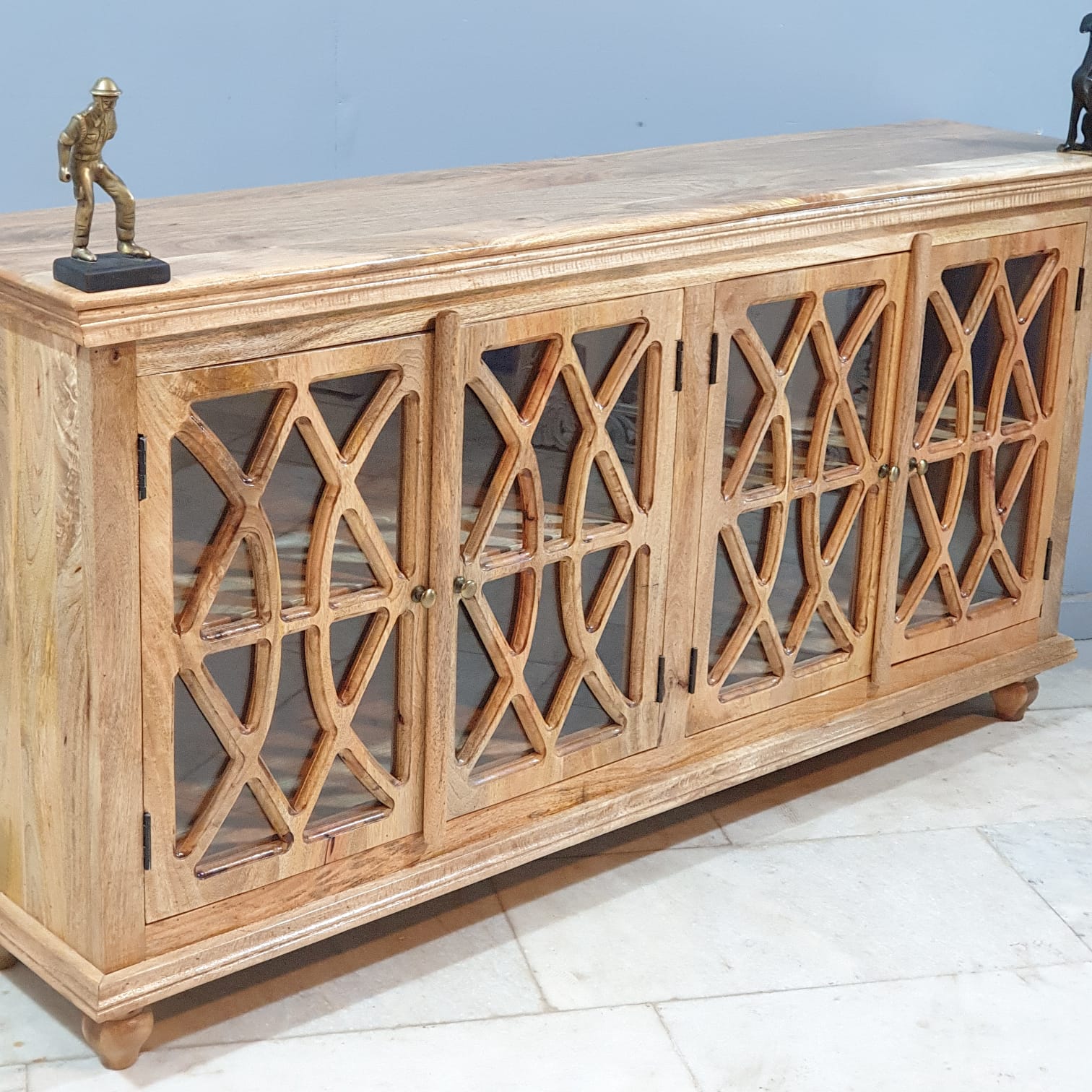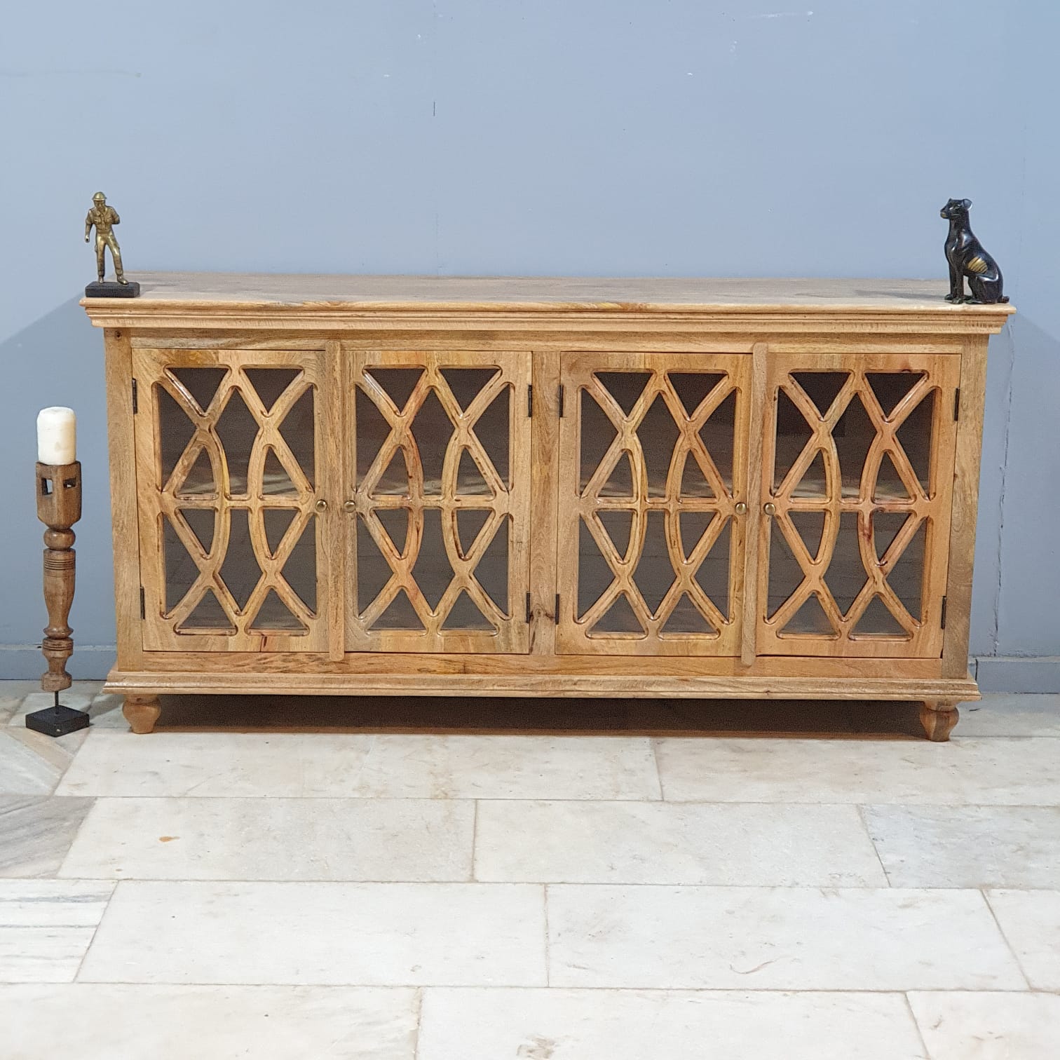 French Arched Hand carved Glass Doors Buffet Sideboard Natural 180x40x90cm