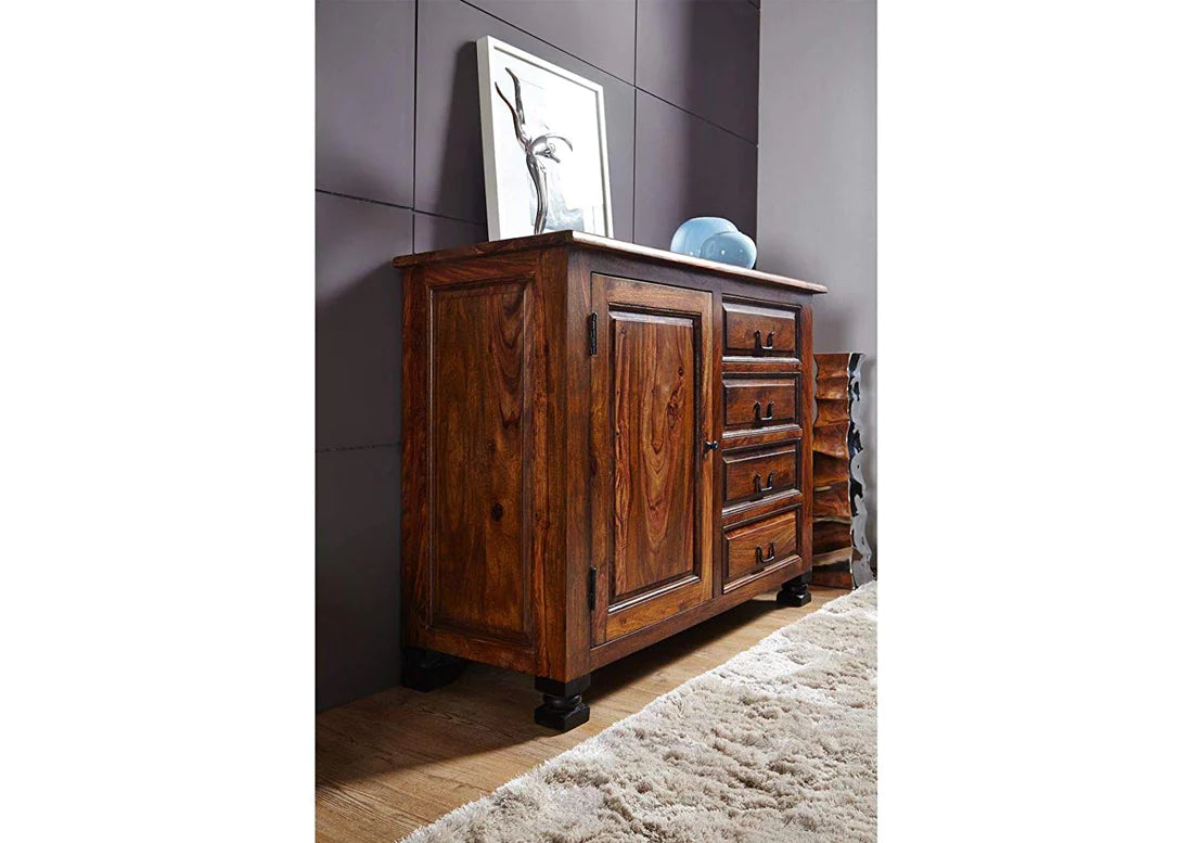 Gfine Sideboard single door and four drawers made of solid Sheesham wood 115x45x90Cm