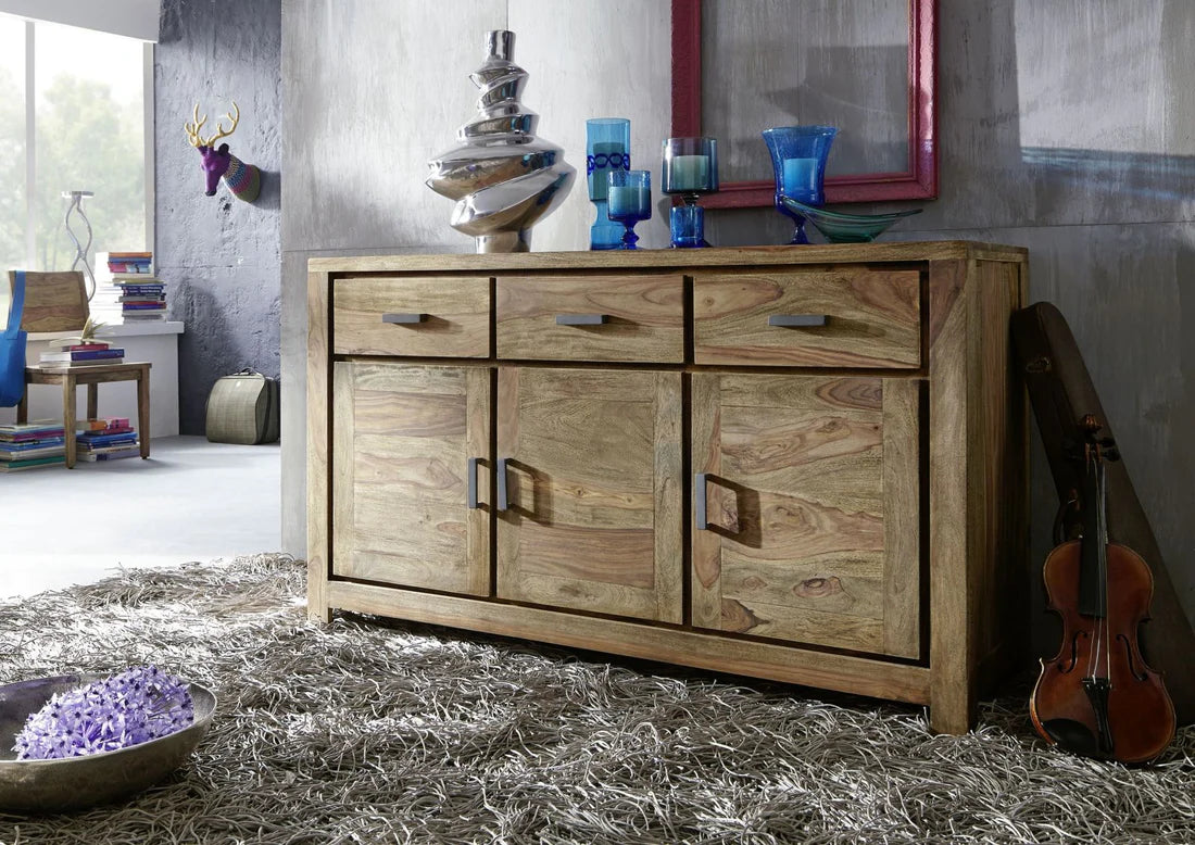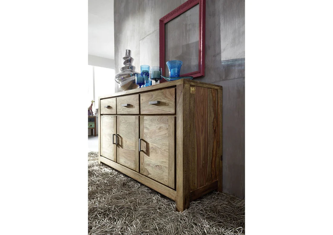 Gfine Sideboard with four doors and two drawers made of solid Sheesham wood 145x45x86Cm
