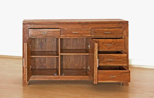 Gfine Sideboard with two doors and six drawers made of solid acacia wood 137x45x86Cm