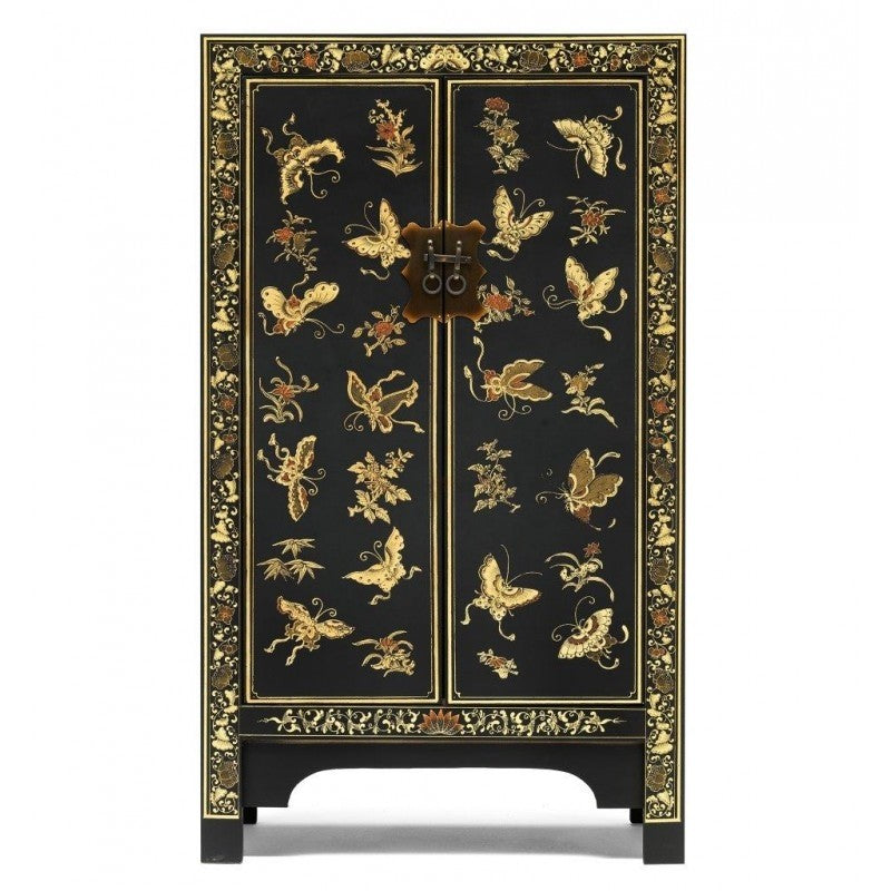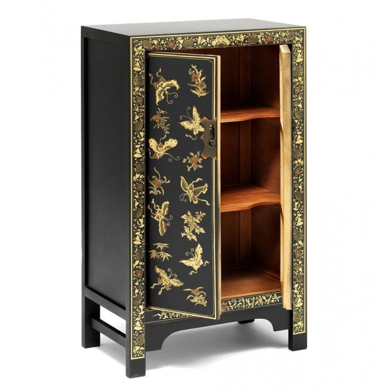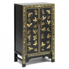 Golden Dragon Oriental Decorated Solid Wood Black Medium Cabinet 70x40x120cm