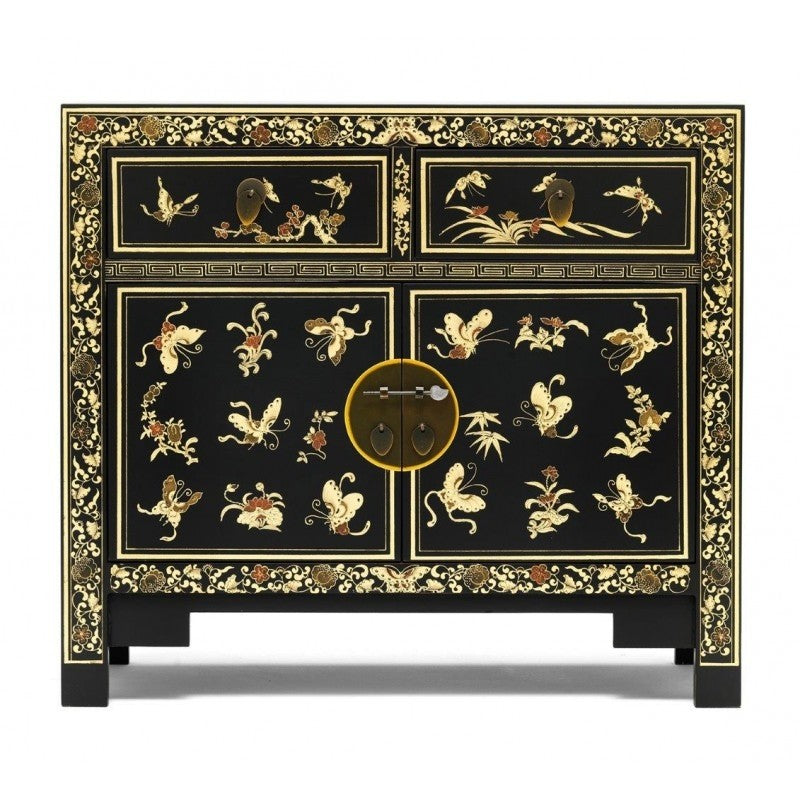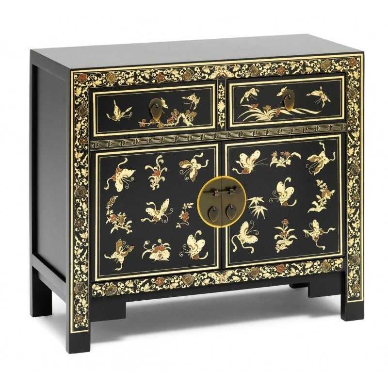 Golden Dragon Oriental Painted Solid Wood Black Gold Sideboard 90x40x84cm
