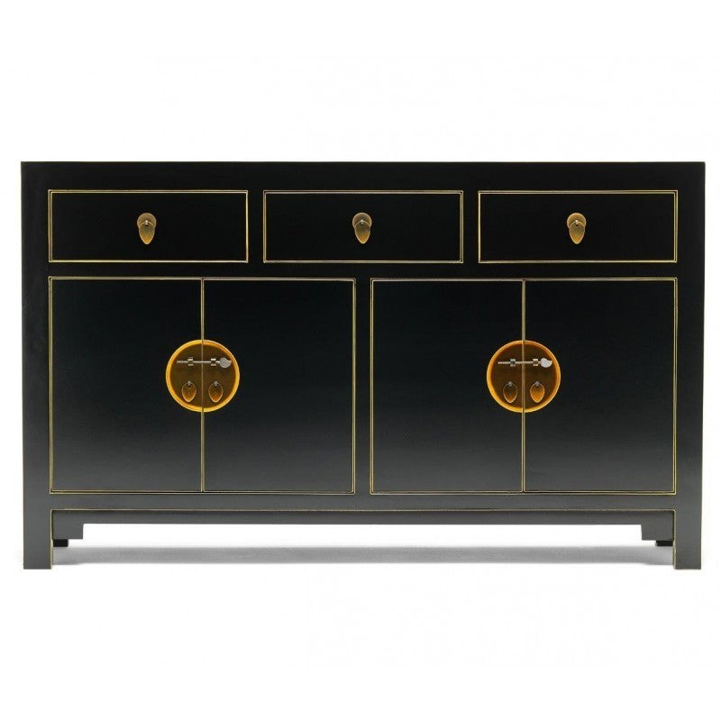 Golden Dragon Oriental Painted Solid Wood Black Large Sideboard 160x40x85cm