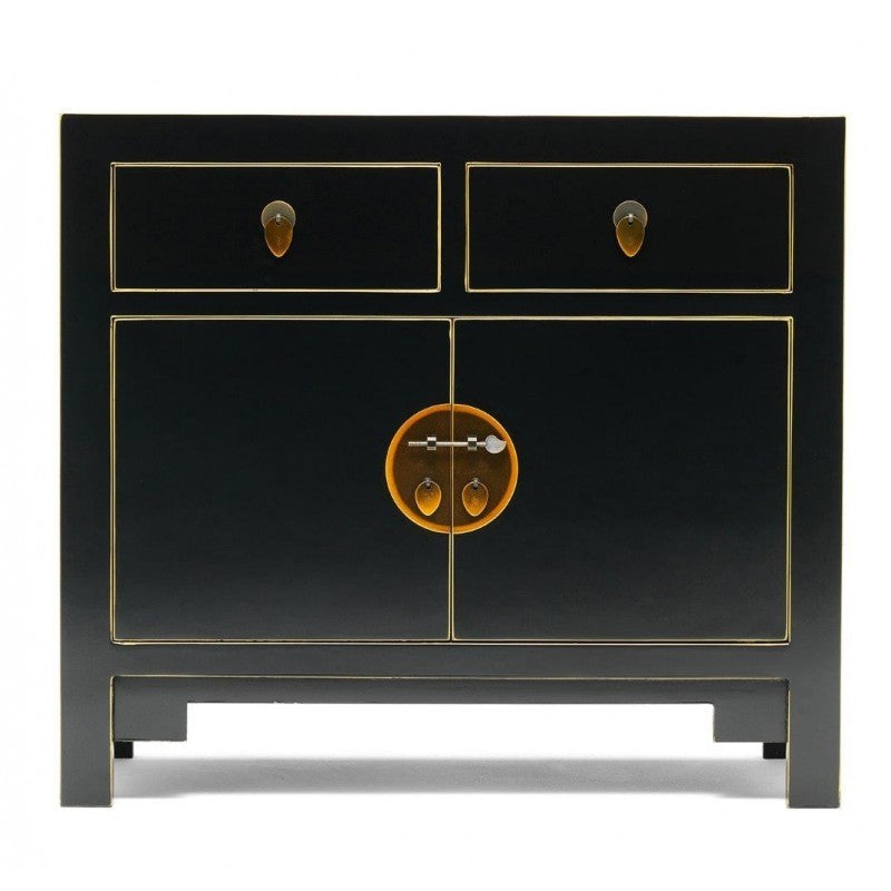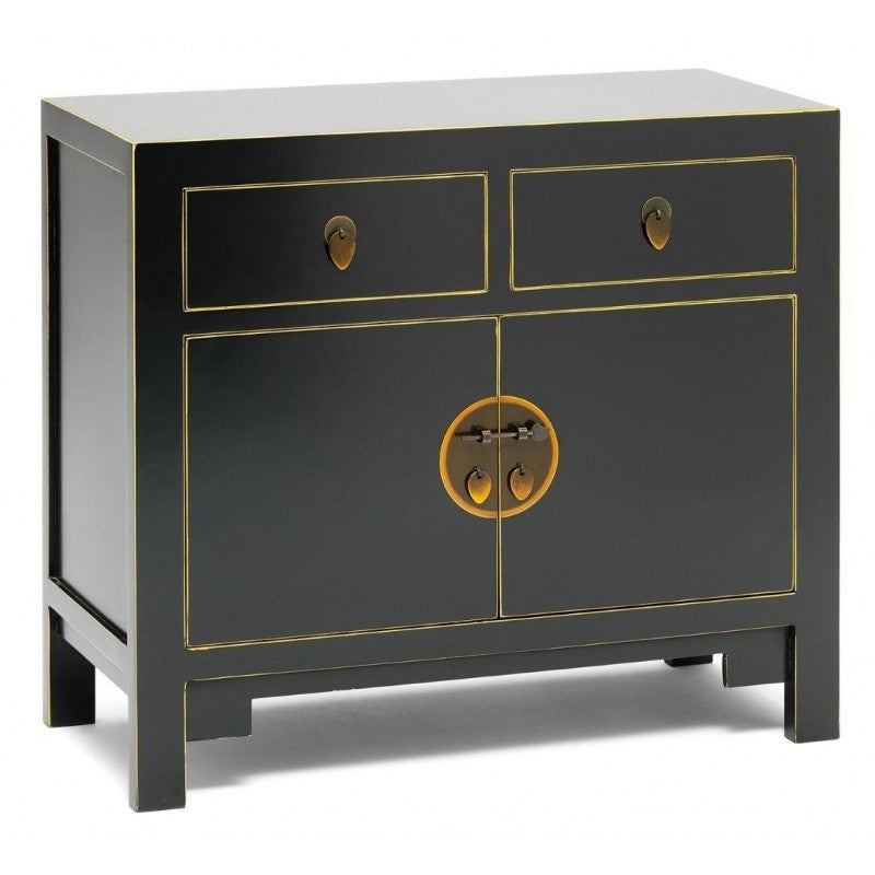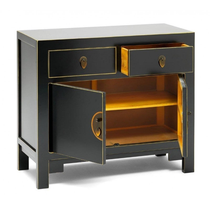 Golden Dragon Oriental Painted Solid Wood Black Small Sideboard 90x40x80cm