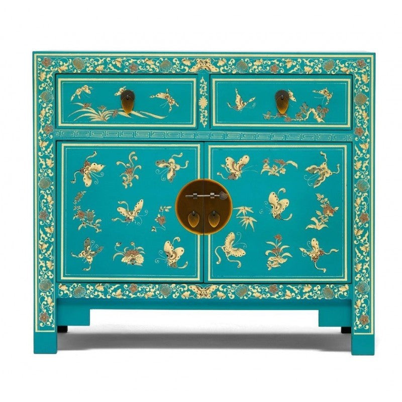 olden Dragon Oriental Painted Solid Wood Blue and Gold Sideboard 90x40x80cm